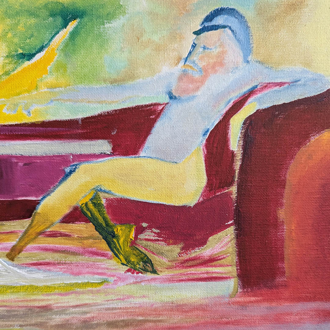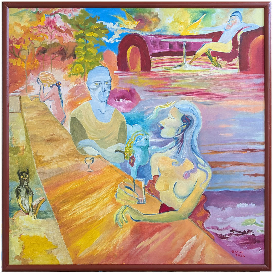 Un policía, ó algo así, en todo caso un guardia de vigilancia, corruptísimo, todo un marino, todo un pirata, con su pata de palo, sin pantalones, desvergonzado, vigila el acceso a su bar, casi nadie se atreve a entrar, le tienen miedo. "El Perro Del Deseo" es el nombre del bar. Ahí está a la barra el 'supuesto' poeta. Todo se dice con sarcasmo, se pone en duda, se ironiza.