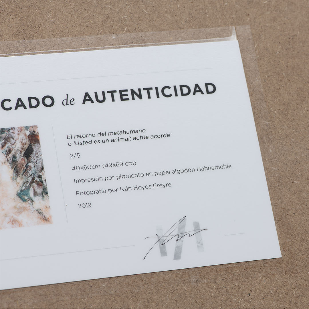 Parte de la serie Telúrico. "¡Ay humanos! Han creído que la razón y la lengua les valen libertad del instinto. Construyen máquinas para comprender, hacer y deshacer. No atrapan el viento porque no pueden. ¡Ay humanos! Tan ensimismados, tan olvidadizos. Oyen pero no escuchan, y dejan pasar el canto del mundo que los llama. ¡Ay humanos! Son tan animales y tan poco conscientes de lo bello que eso es."