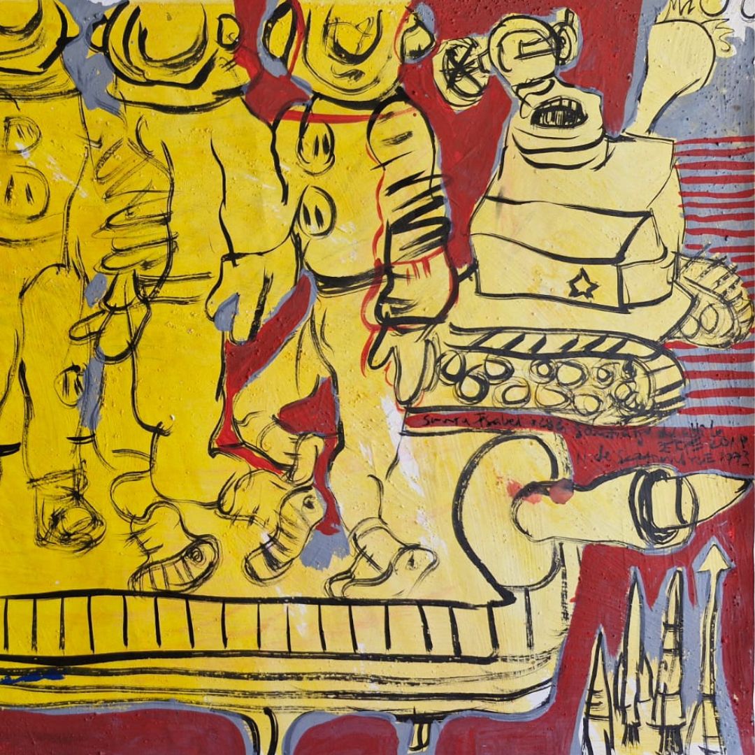 Esta serie de grabados y técnicas mixtas se centra en temas de conflicto y crisis, reflejando tanto las tensiones de guerra como las dificultades cotidianas como la escasez de alimentos, en el contexto de la inseguridad en las calles.