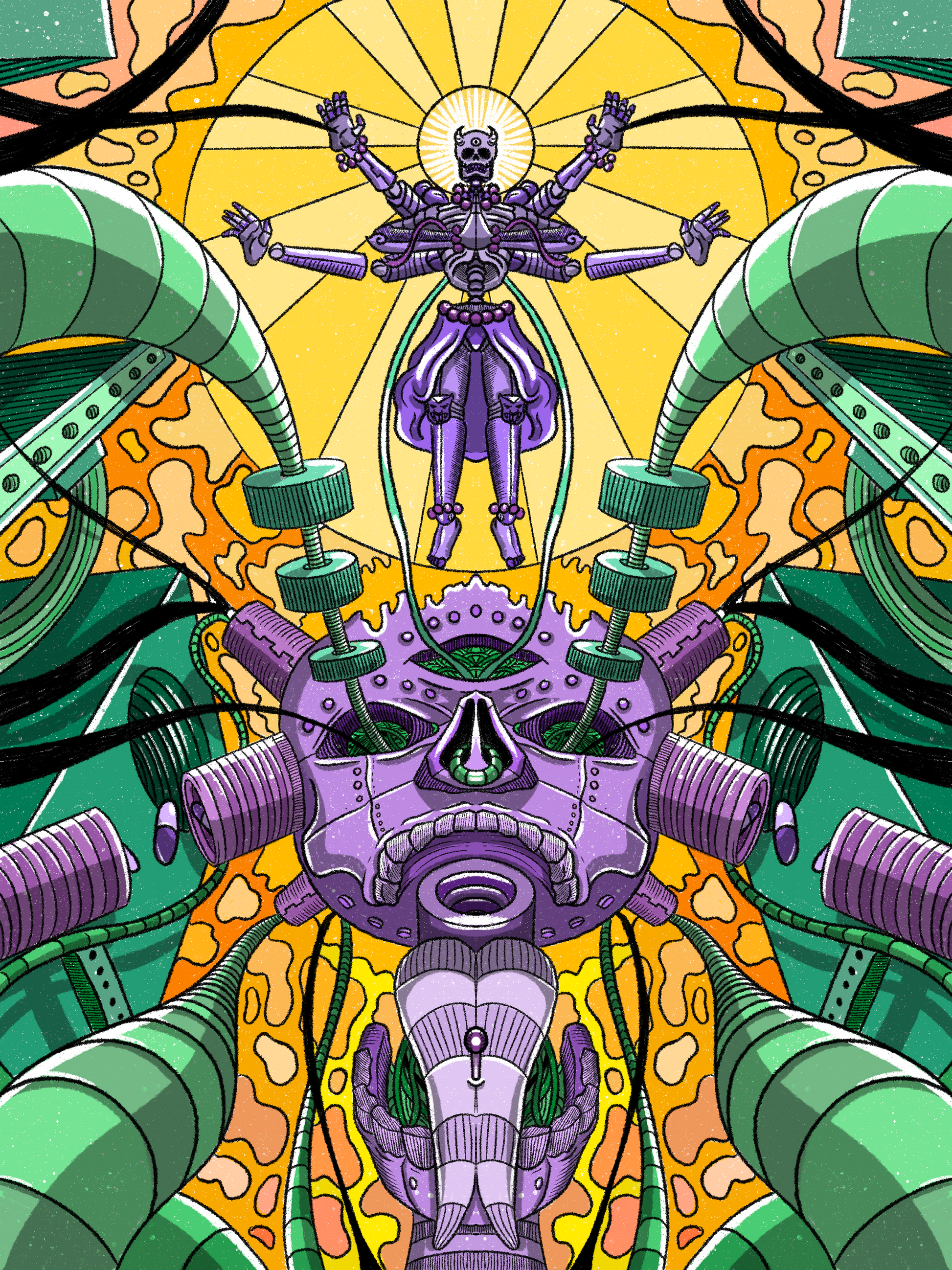 El Sol Interior (Acrílico de 3 mm) Al encontrar la iluminación interna a causa de la muerte del ego, logras ver mundos increíbles dentro de ti, lejos de lo material, de lo físico y lo externo, puedes verte como eres y aceptarte. La meditación me ha llevado a lugares que nunca pensé que existieran. Verte completamente desnudo de alma es una experiencia emocionante, liberadora y en su mayoría de veces aterradora, al lograr pasar por todas esas puertas puedes conectar contigo para estar mejor con el mundo.