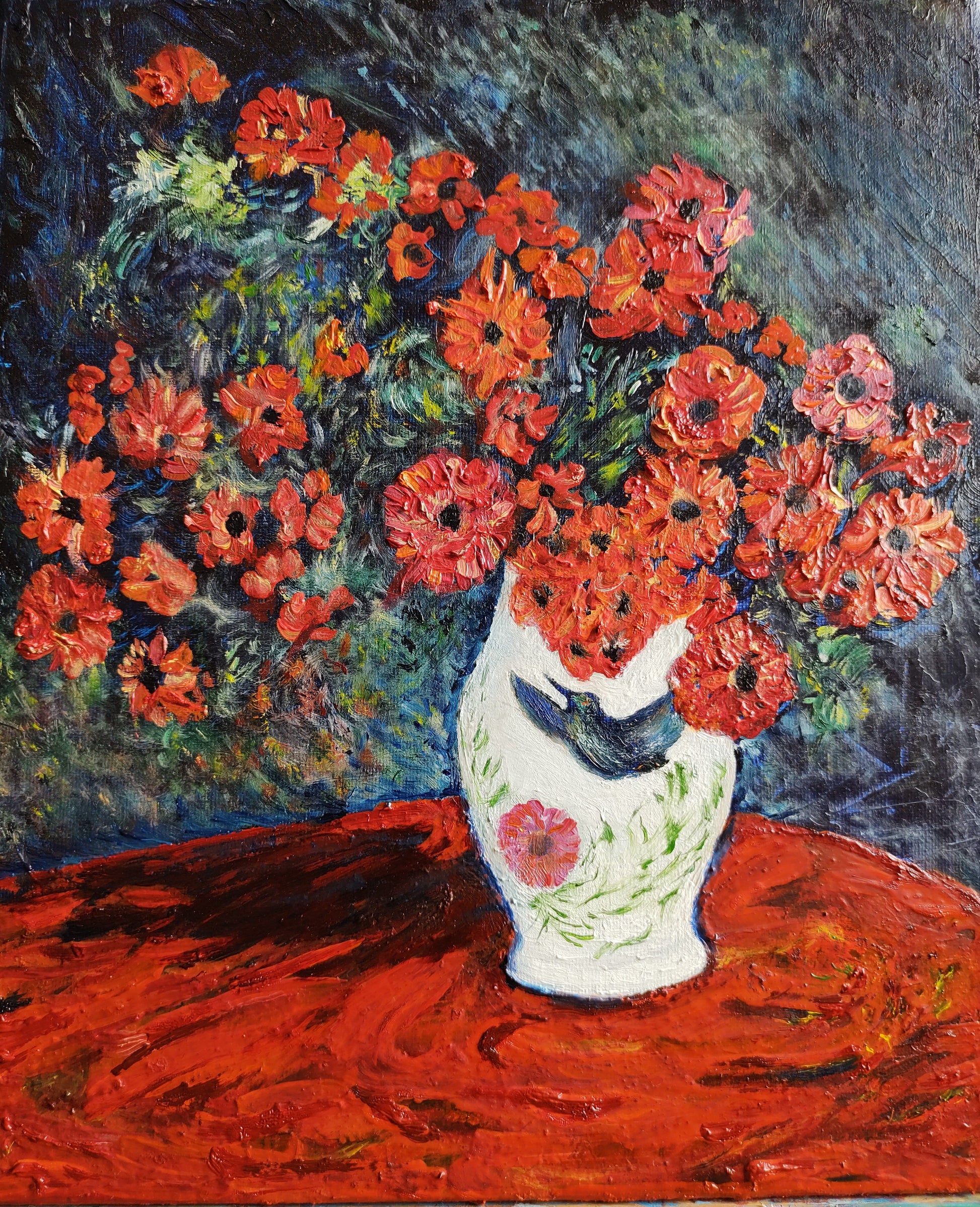 Pinceladas dominadas por el estímulo de la obra maestra de Claude Monet, "Crisantemos rojos" y algo de Cognac.