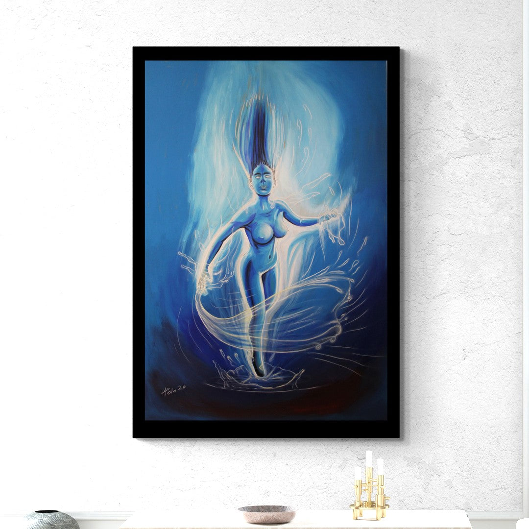 El agua como elemento primario que alude a la existencia del ser humano, una danza de vida y vitalidad, un baile de seda y de amor a la creación.