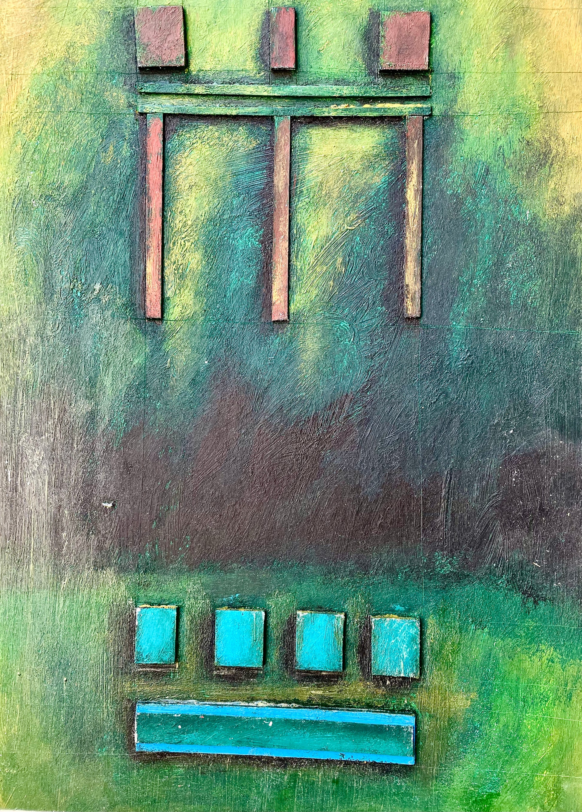 Obra abstracta del artista Huachilango que explora la textura y el movimiento a través de técnica mixta, con relieves tridimensionales que crean profundidad y dinamismo visual. Las tonalidades de verdes y azules se entrelazan con líneas que generan un efecto de auras luminosas, invitando al espectador a descubrir nuevas perspectivas según el ángulo de observación. Pieza única que combina color vibrante con texturas táctiles, ideal para coleccionistas de arte contemporáneo que valoran la experimentación formal.