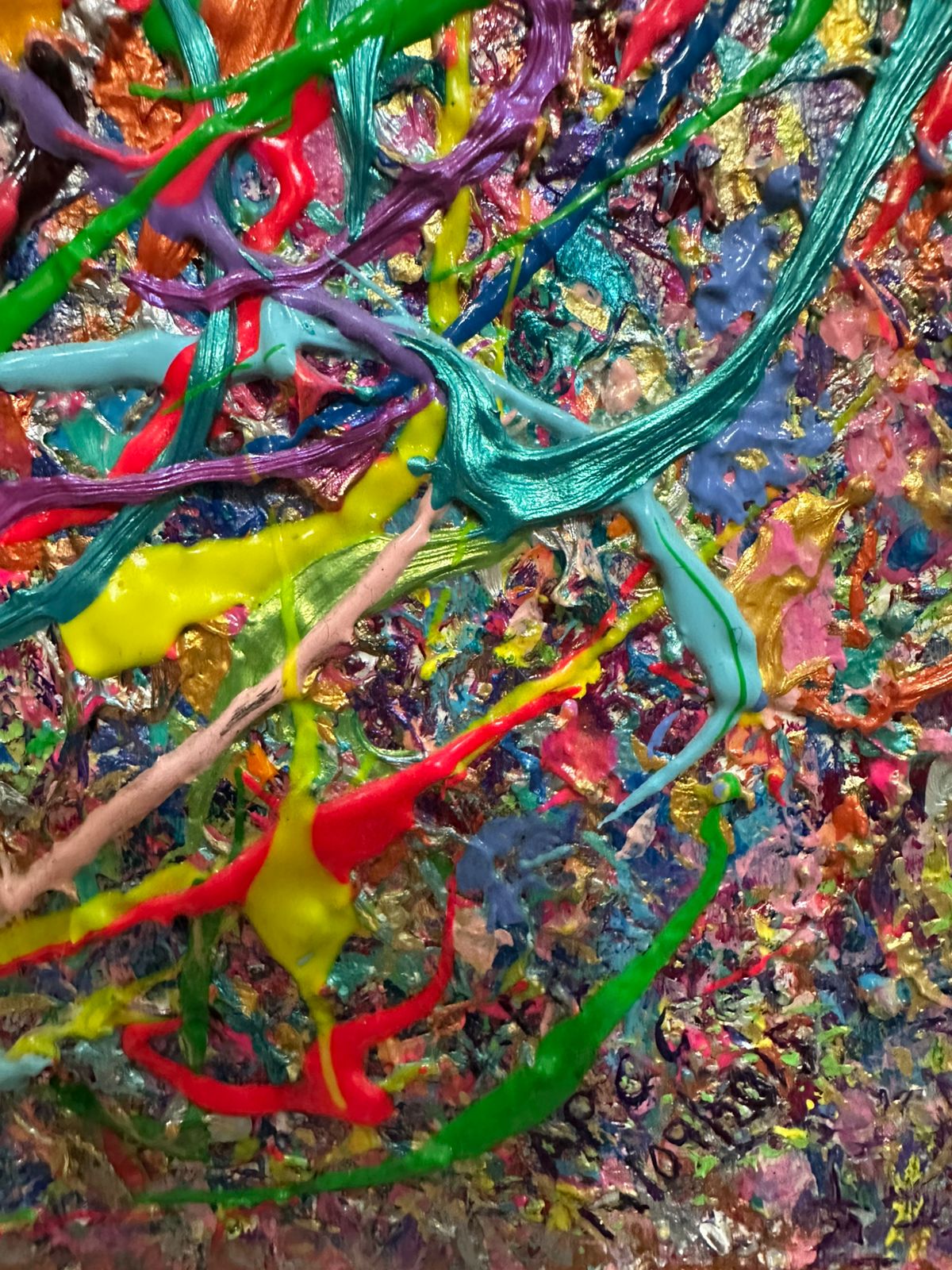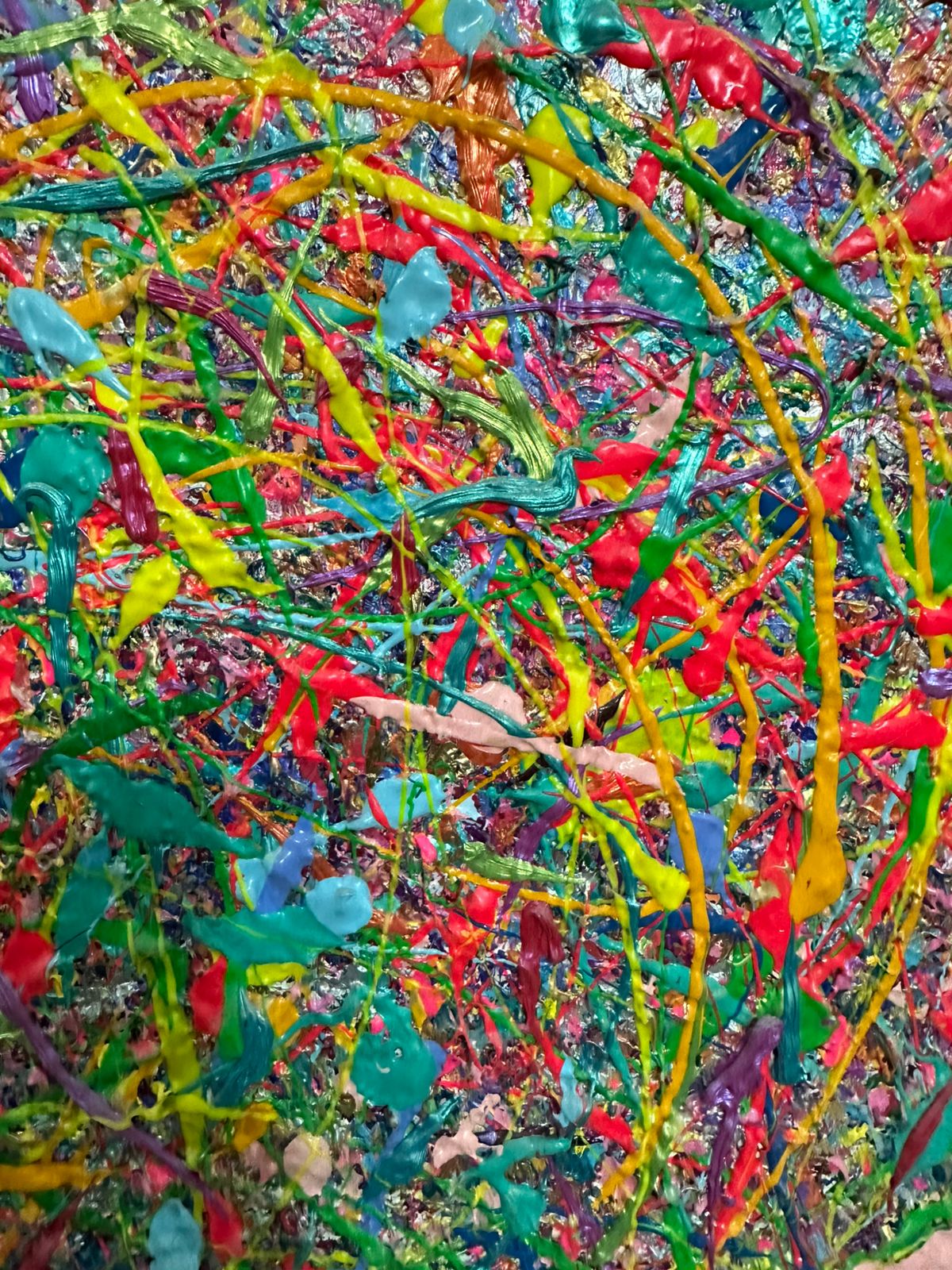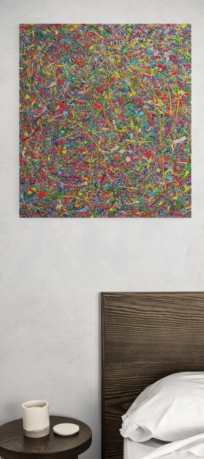 Esta obra representa la vida misma porque todo está en constante movimiento. Nada permanece igual con el paso de los años. Es por eso que cuenta con colores que dan la ilusión de estar yendo y viniendo de un lado a otro a lo largo del bastidor.