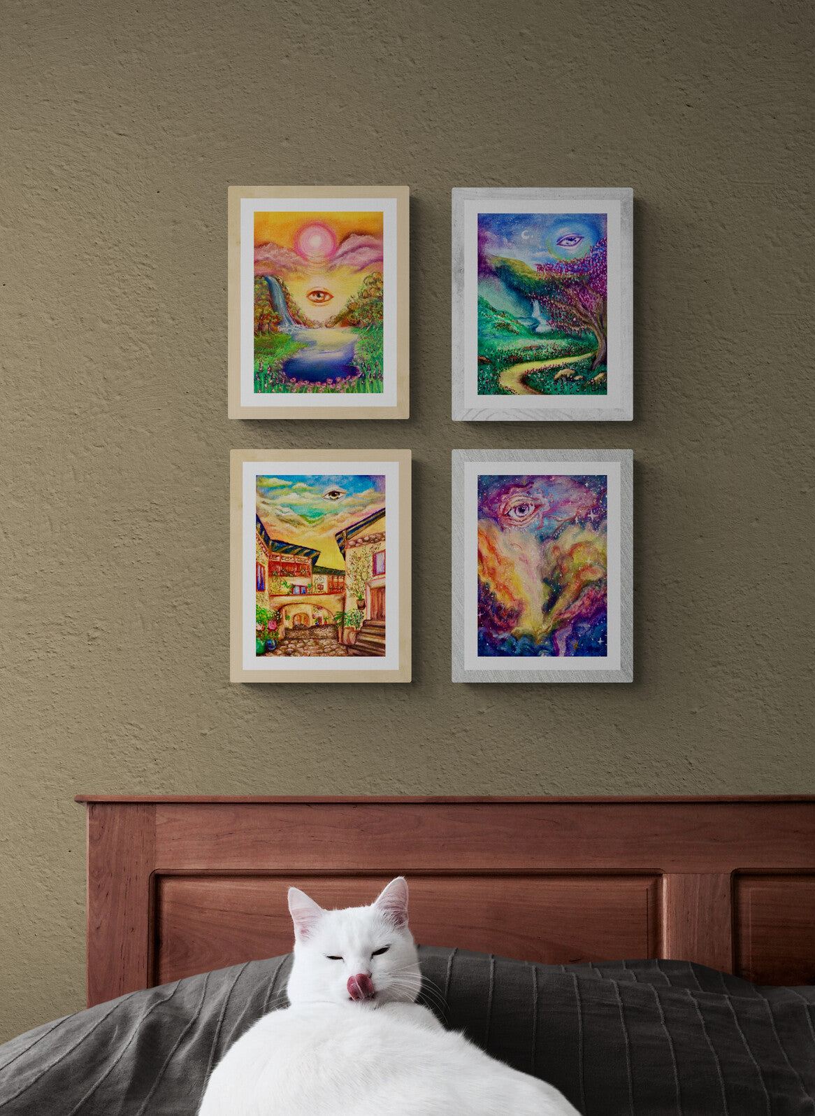 Logos es una colección de cuatro ilustraciones realizadas con gis pastel y óleo, que explora la omnipresencia de lo divino o la esencia universal. Cada obra presenta un paisaje único con un ojo que observa, simbolizando la conexión entre lo visible y lo trascendental. Las piezas, tituladas En el día, En la noche, En cualquier lugar y En todo momento, sugieren que la gran obra del universo está presente en todos los rincones, manifestándose en cada instante de nuestra existencia.