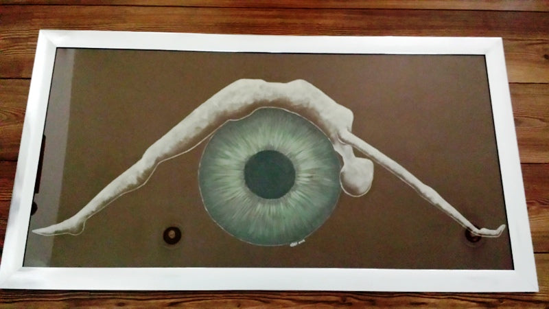 Técnica: Pintura metálica al acrílico sobre papel, enmarcado con cristal.