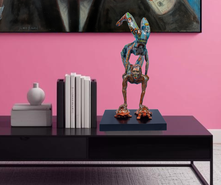 Escultura moderna / Resina - Tortugas hasta el fondo, coordenadas: 1.618033...?