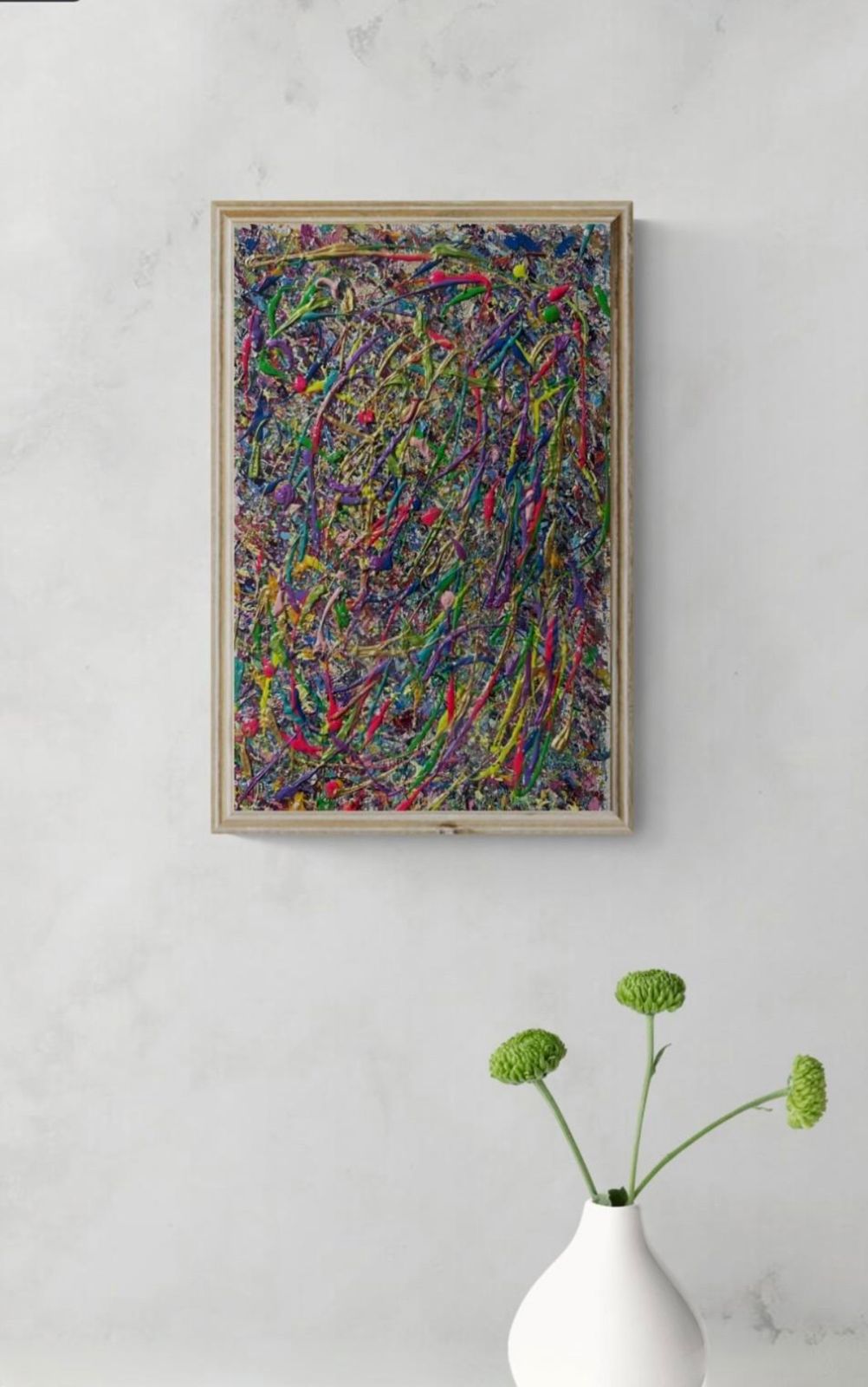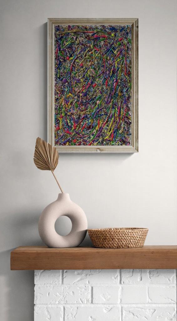 Obra que forma parte de mi colección de arte abstracto moderno. Fue una obra creada para plasmar sentimientos de felicidad.