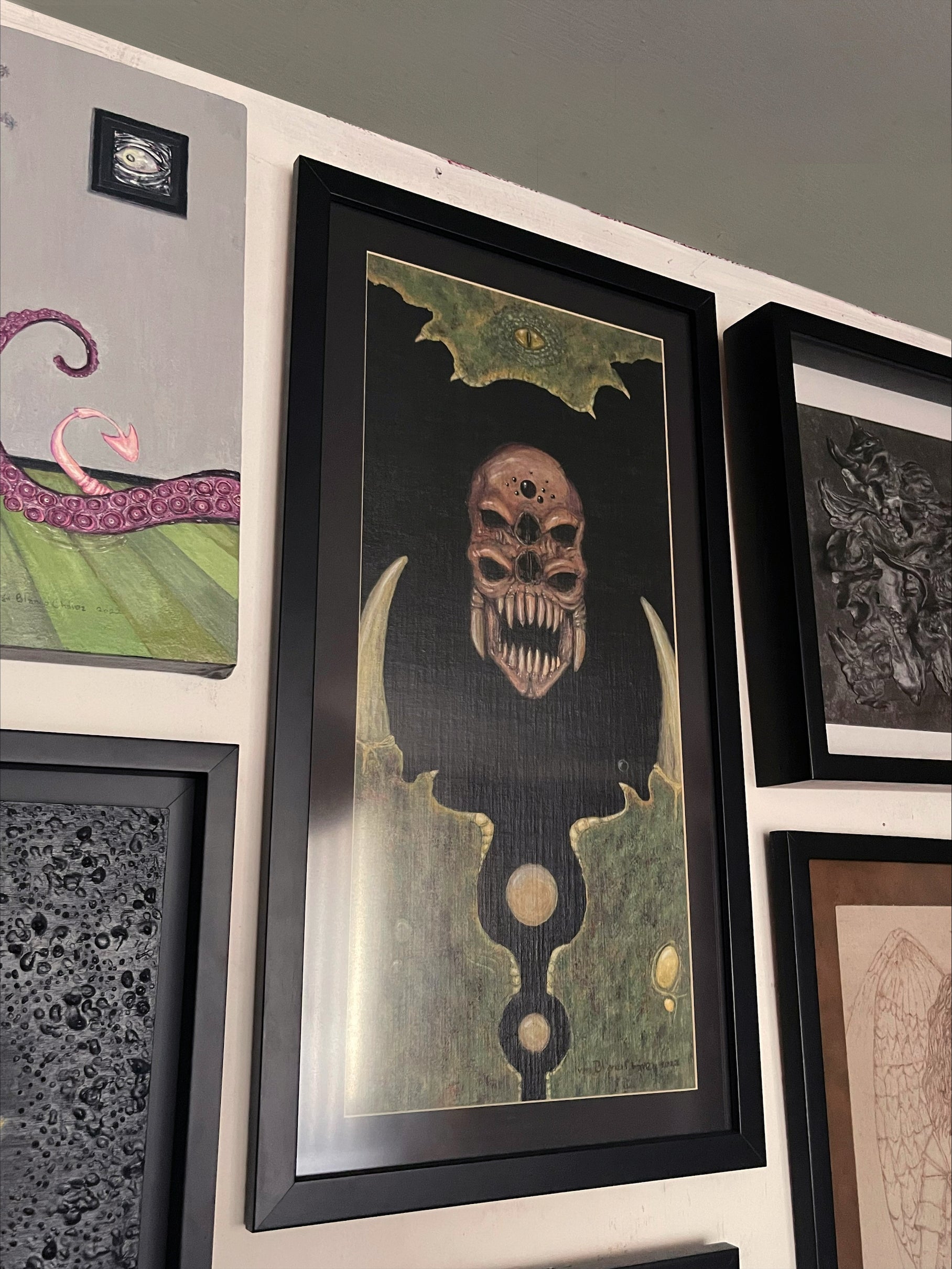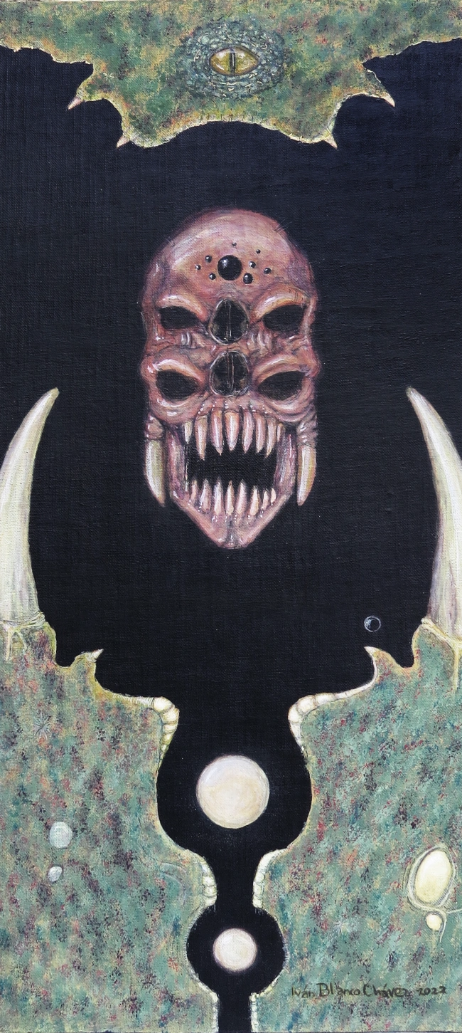 El espejo siempre ha sido un objeto de muchas historias y misterio, es un elemento fundamental en el uso de la retórica, usualmente utilizado en las metáforas, las analogías, las antítesis y por su puesto la figura del símil. Me he inspirado en los cuentos antiguos como los de los hermanos Grimm para desarrollar esta obra y también busqué cierta influencia de grandes artistas como Frazzeta y Ralph Bakshi. Mi interés se centraba en hacer una obra de arte fantástico que representara un espejo mágico capaz de transportarnos a un mundo lleno de misticismo.