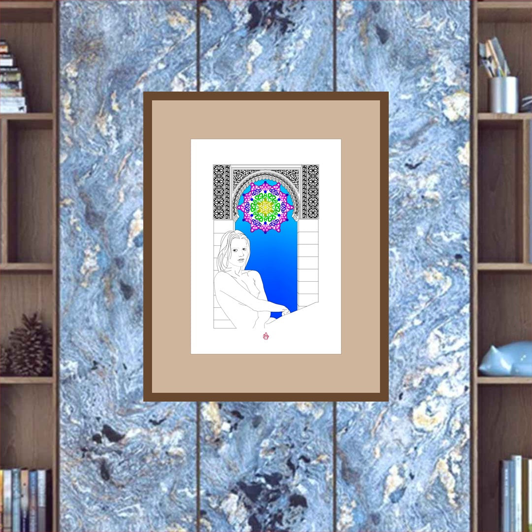 Quitada de la pena sin el menor pudor, se hace la distraída esperando el sonido de la banda bajo el rosetón que adorna su ventana hacia el mundo que desea conquistar.