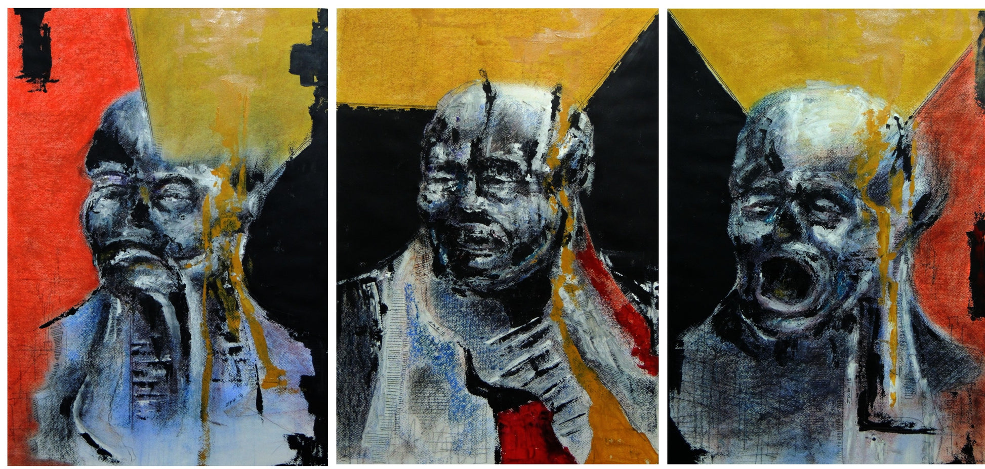 Tríptico realizado en el año 2018. Cada panel tiene una medida de 70 x 50 cm. (70 x 150 cm. total). Obra no enmarcada. Se entrega con un soporte rígido para evitar daños en su transporte.