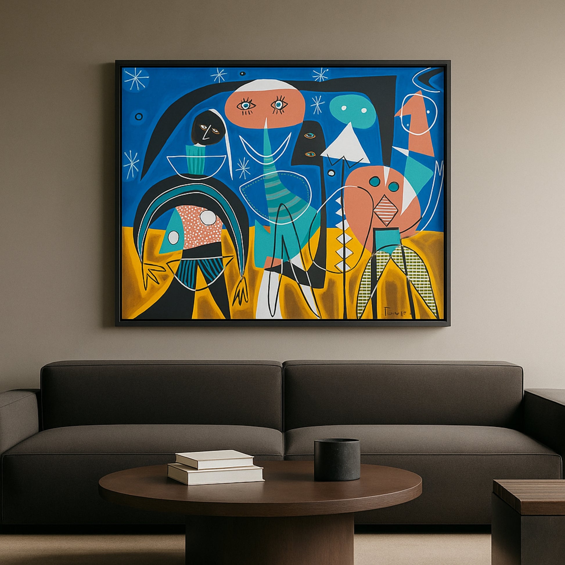 Más que un título, Estamos juntos en esto es un manifiesto visual sobre la empatía y la alegría compartida. Cada color, línea y forma en la pintura funciona como un puente hacia la conexión emocional, reafirmando la capacidad del arte para unir, inspirar y celebrar la experiencia humana.