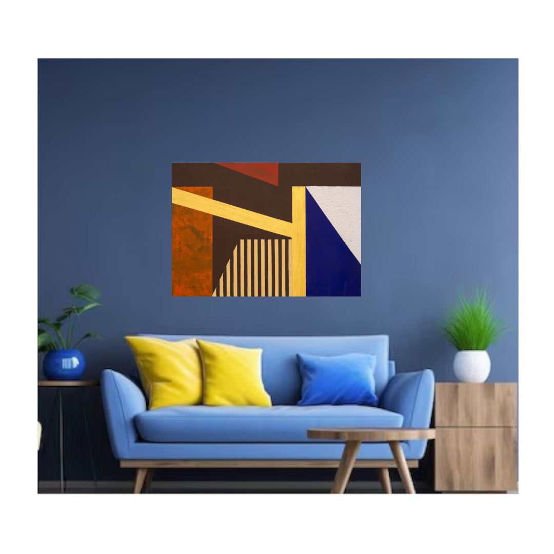 Arte abstracto sobre bastidor de tela de algodón con técnica de pinceladas en pintura acrílica, gesso, esponja.