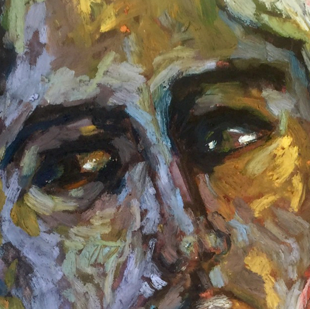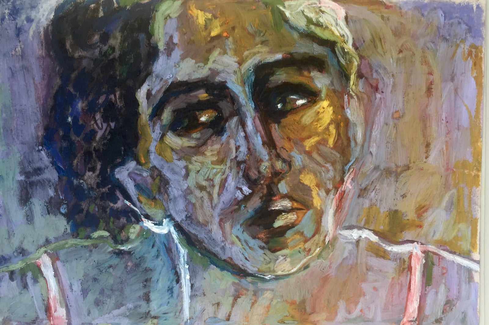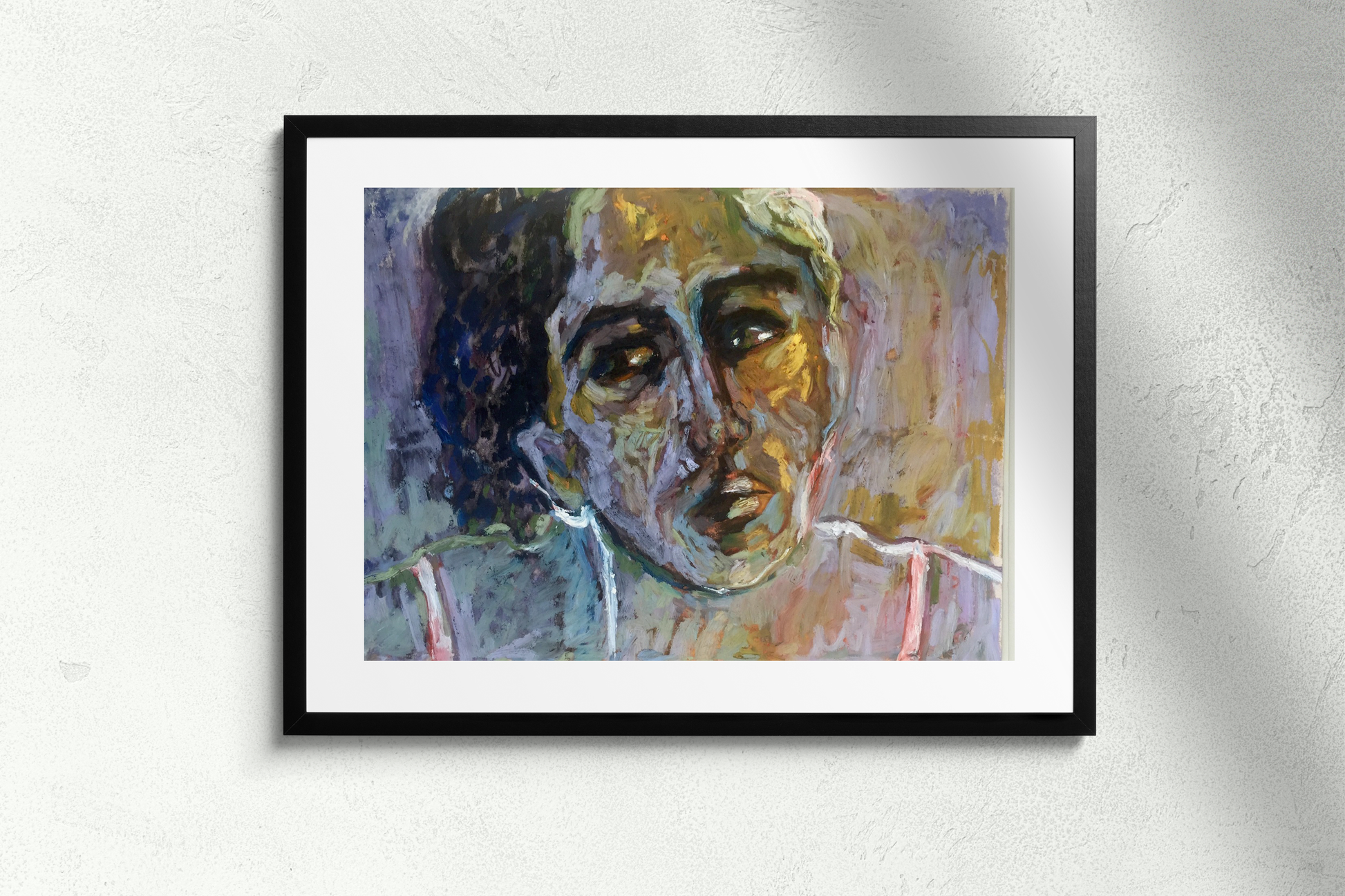 Un retrato de trazos densos y vibrantes, donde la mirada transmite introspección. El color se convierte en emoción más que en descripción.