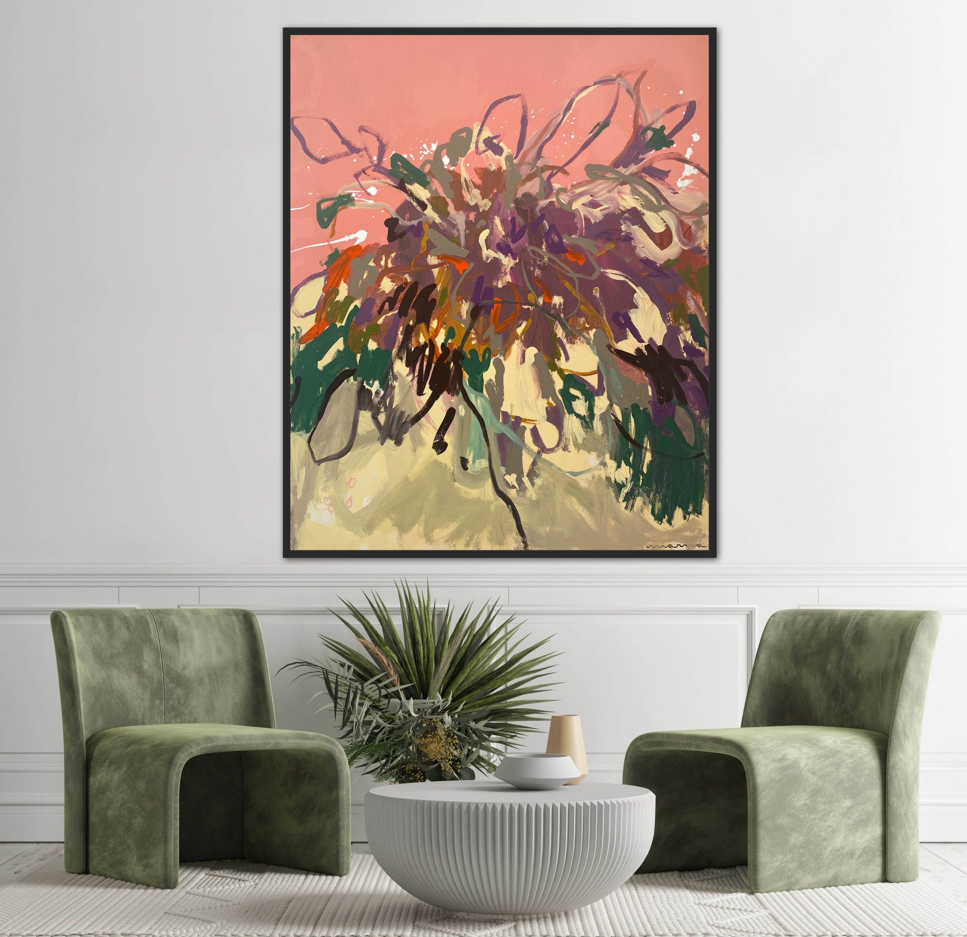 Esta obra transmite una sensación de lujo y distinción, invitando al espectador a perderse en la exuberancia y sofisticación del ramo.