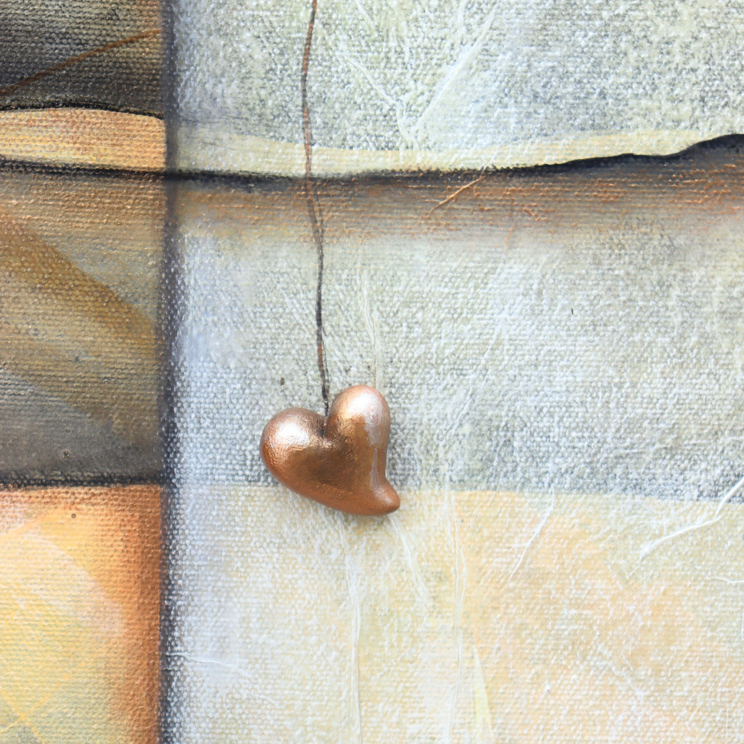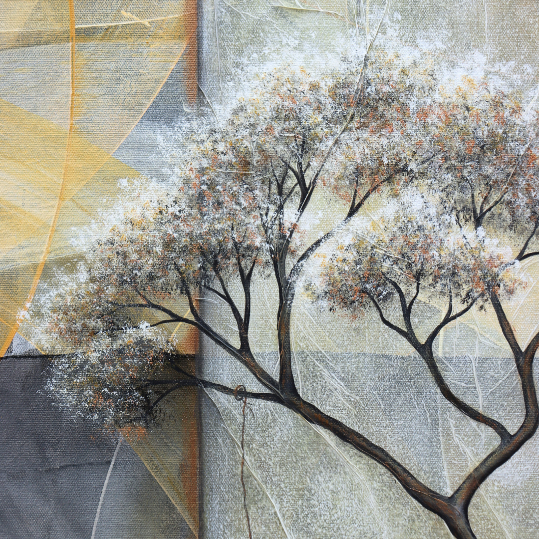 Obra realizada utilizando acrílico con espátula para obtener múltiples veladuras las cuales le aportan mucha textura visual. Cuenta también con un poco de textura táctil lograda con papel. Se complementa con un pequeño detalle 3D en porcelana fría.
