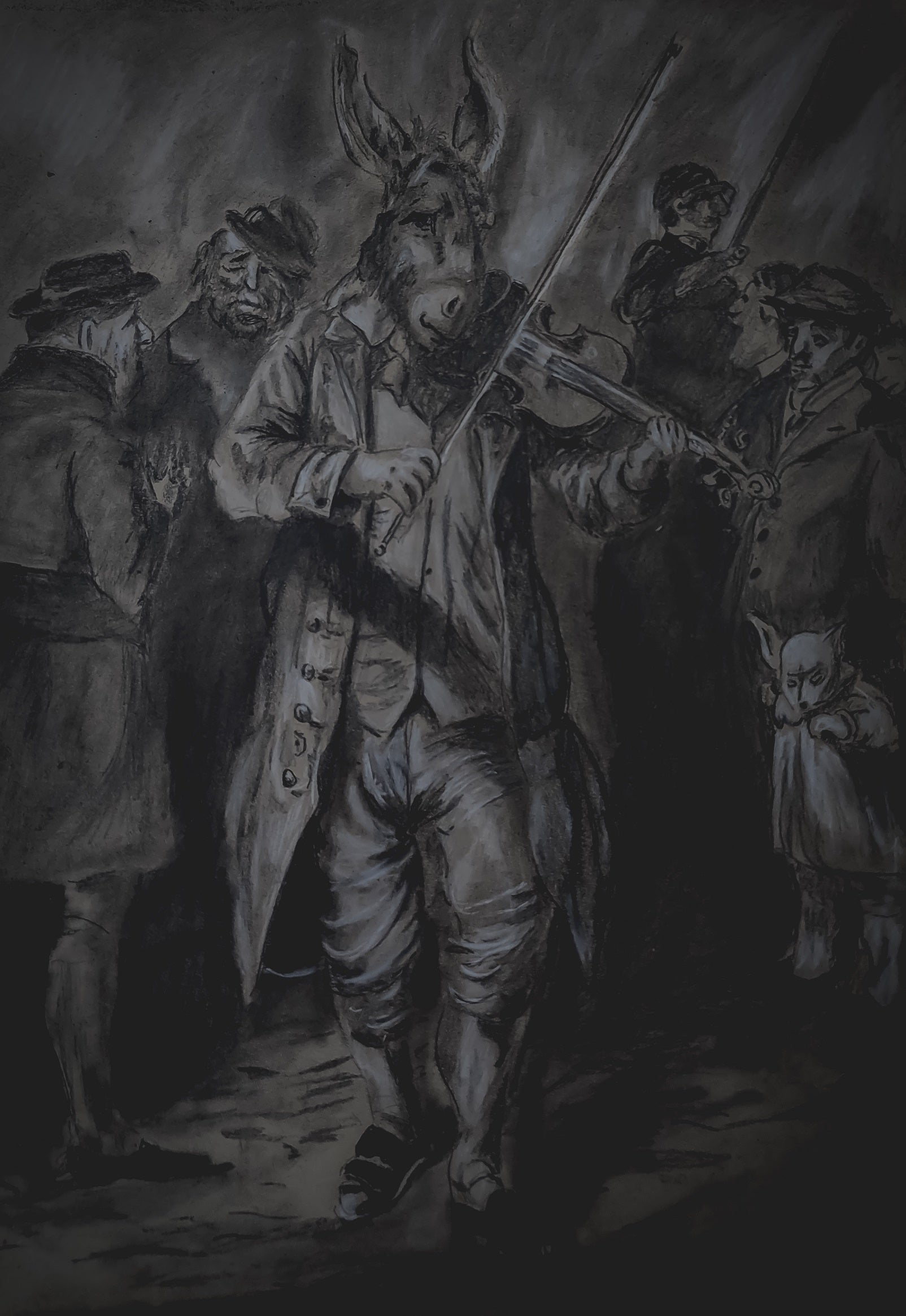 El violín, un aullido sordo en la noche, resalta el absurdo de una existencia marcada por la crueldad. El burro, con su cabeza de bestia y corazón humano, encarna la tragedia de lo diferente. La mueca de los espectadores, una máscara de indiferencia al sentimiento ajeno.