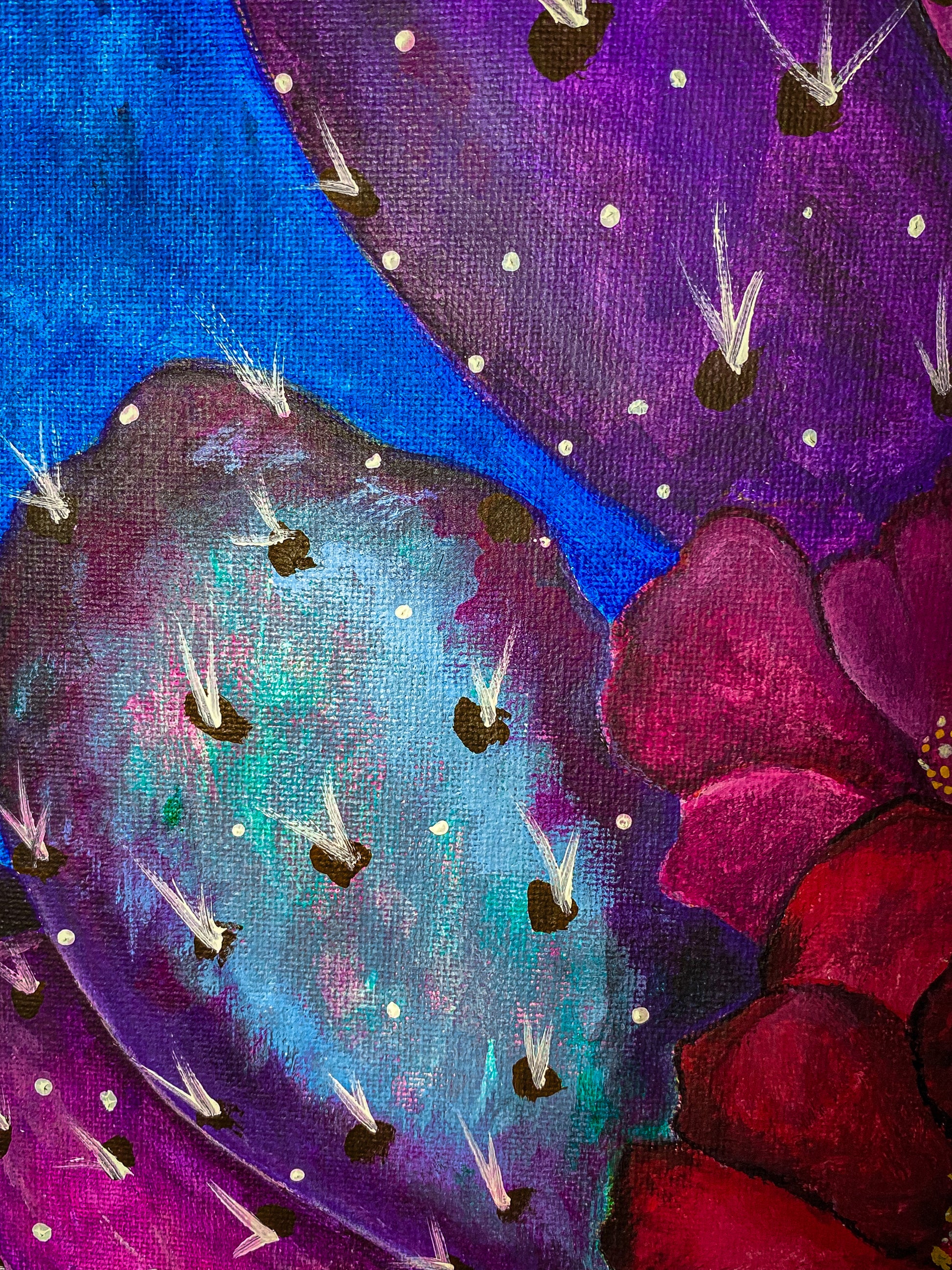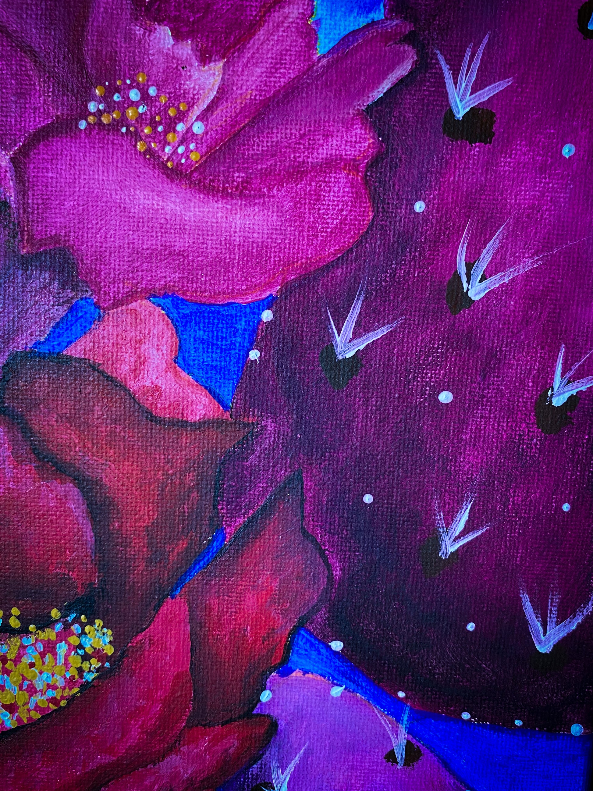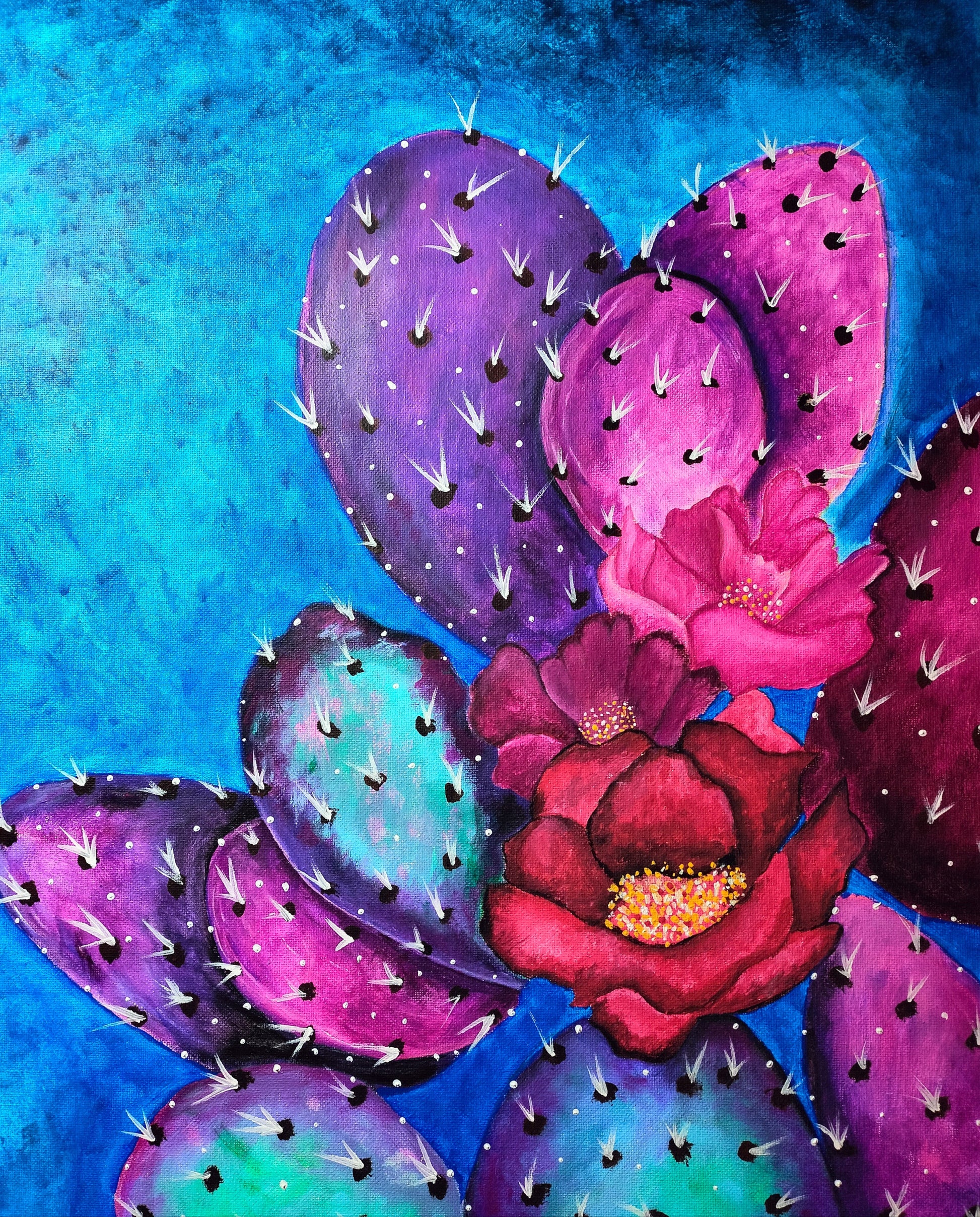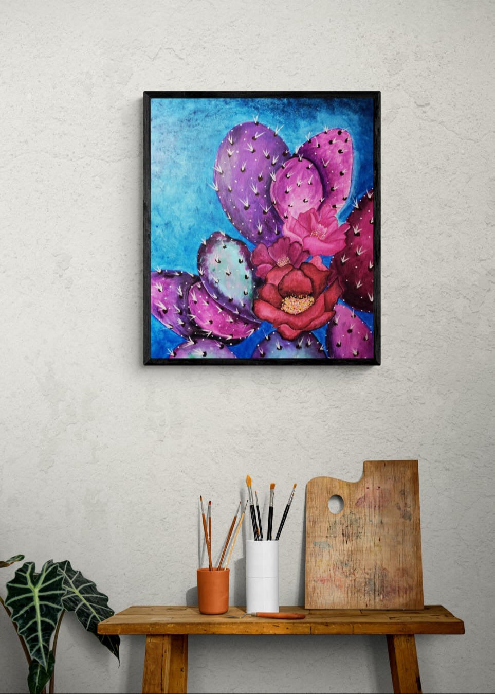 En un rincón donde el cielo canta, bajo un cielo que arde en tonos de añil, se alza un jardín de espinas encantadas, cactus dormidos en un sueño sutil.