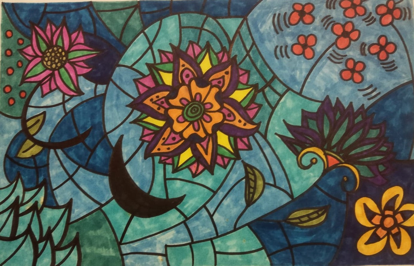 Este cuadro me recuerda a cuando las flores caen en el agua, ya sea en una alberca o fuente. Me encanta ver esta escena de flores flotando en el agua.