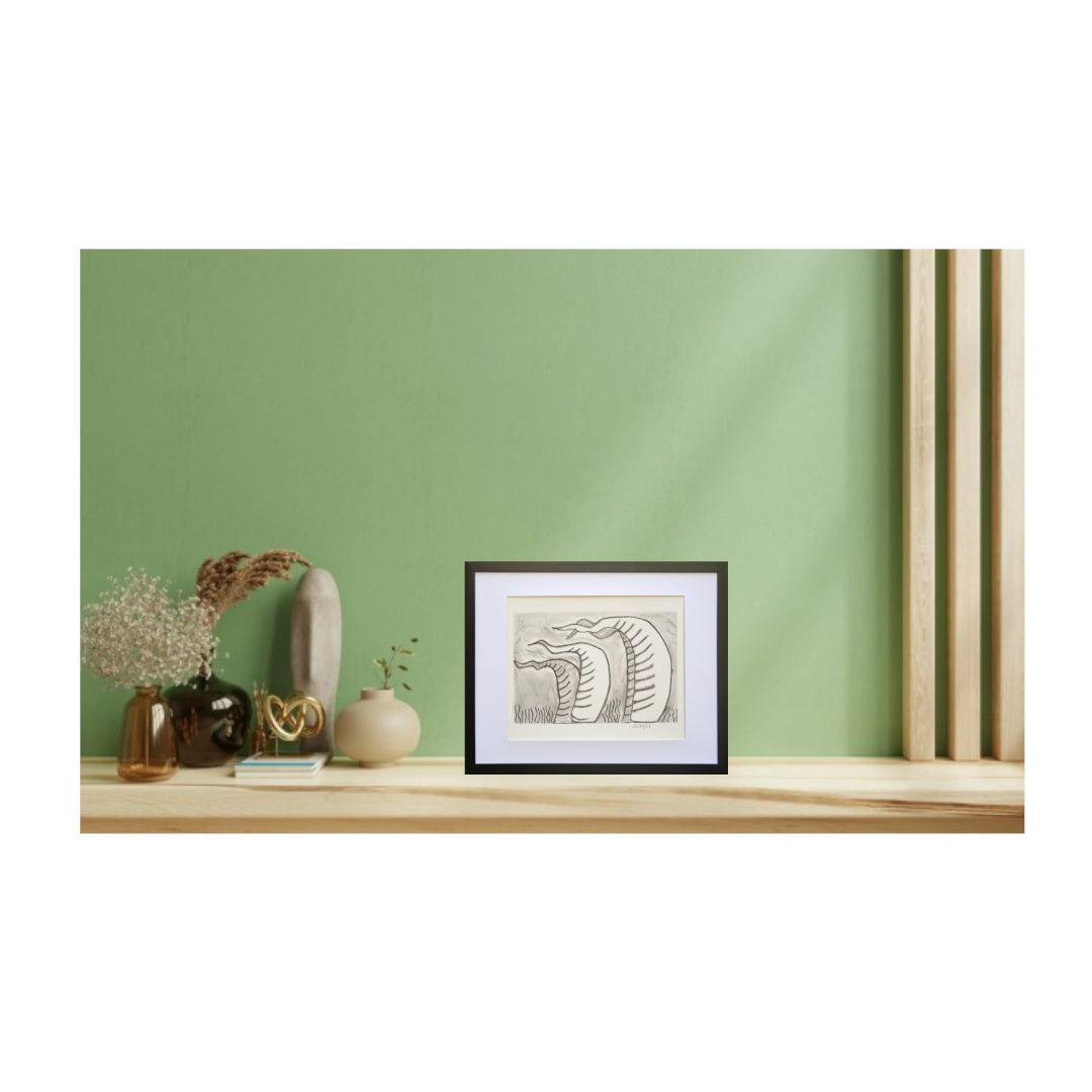 Arte abstracto sobre papel con técnica de carboncillo, grafito, enmarcado con aluminio.