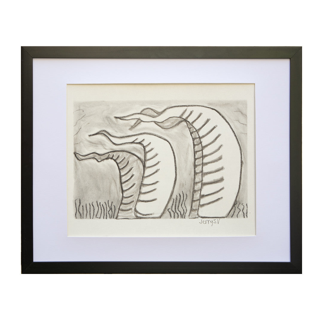 Paper in a black aluminum frame charcoal and graphite technique.