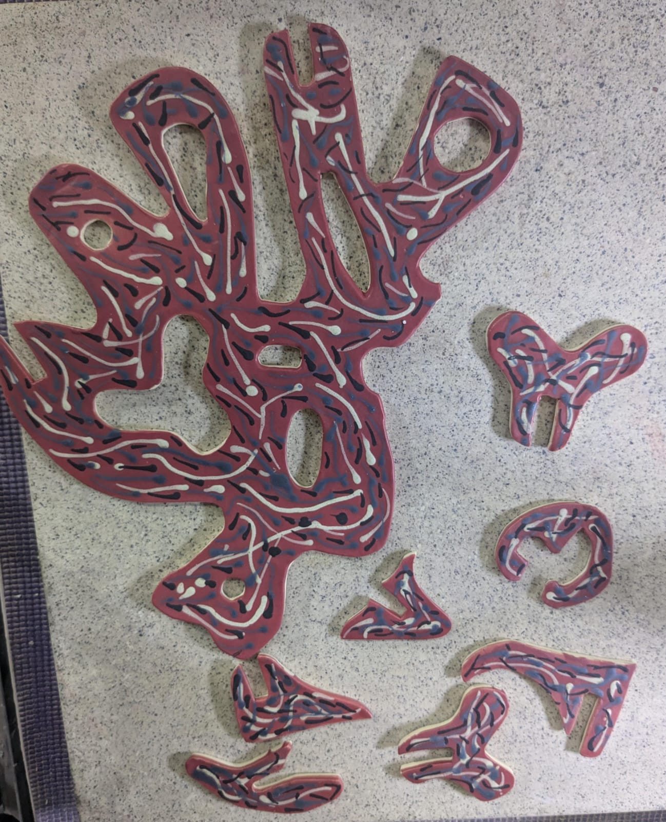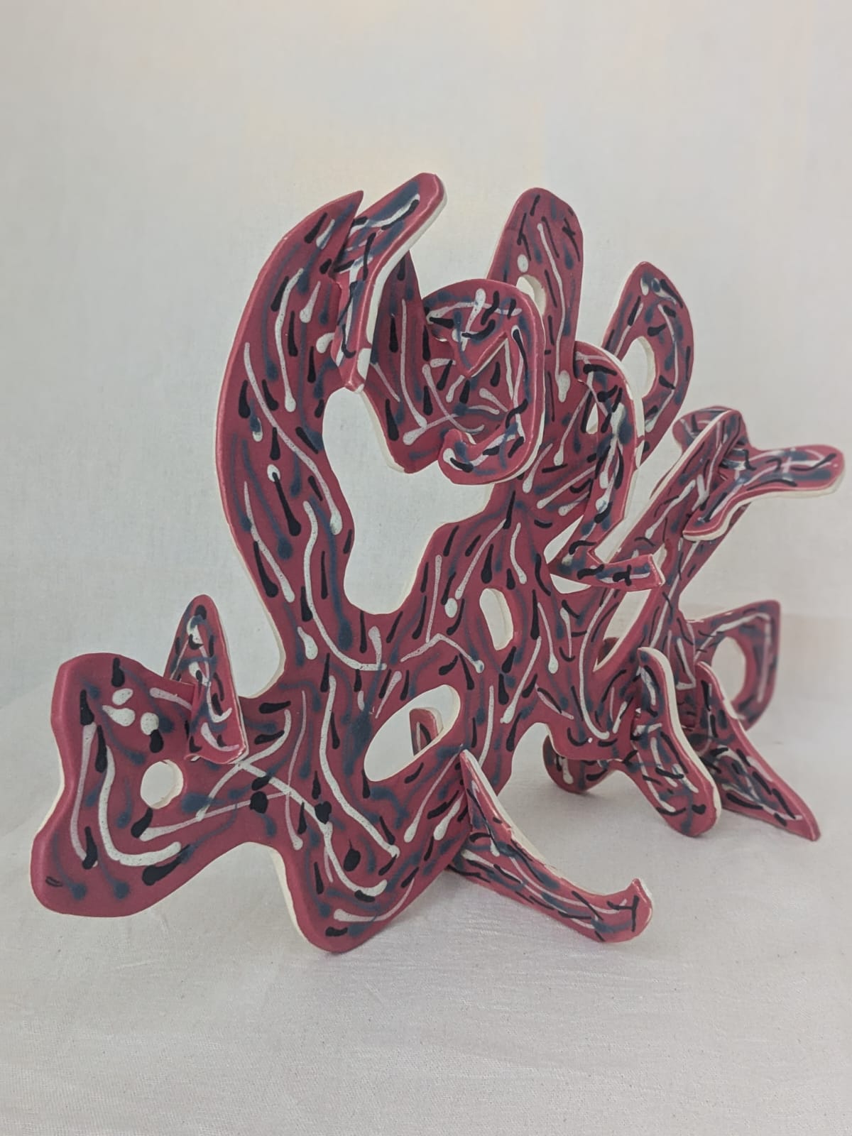 Fragilidad en movimiento, explora la dualidad entre la fragilidad y la fuerza. La placa de cerámica, delgada y delicada, se sostiene gracias al ensamblaje de soportes cerámicos, que a su vez permiten un suave movimiento, evocando la danza entre lo sólido y lo efímero.