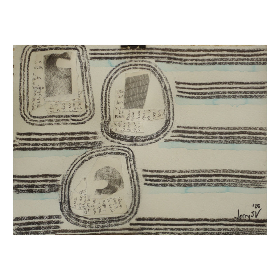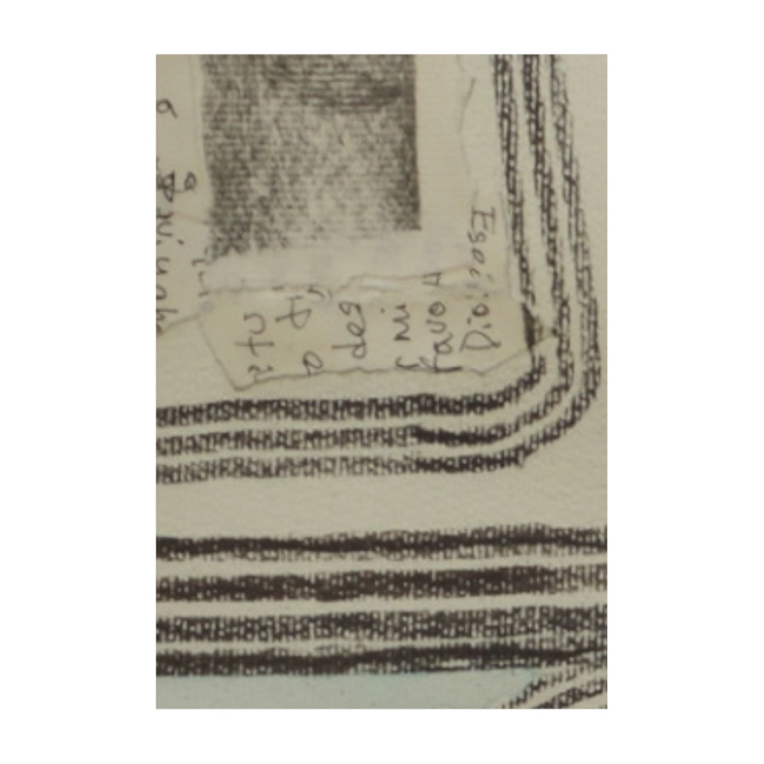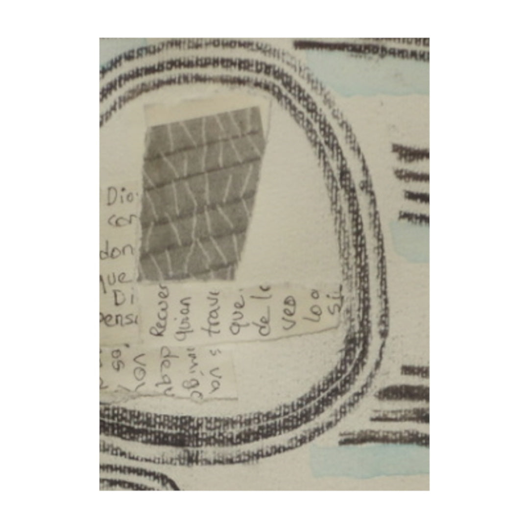 Paper, charcoal, collage, and acrylic. Size: 42x29 (H/W) cm.