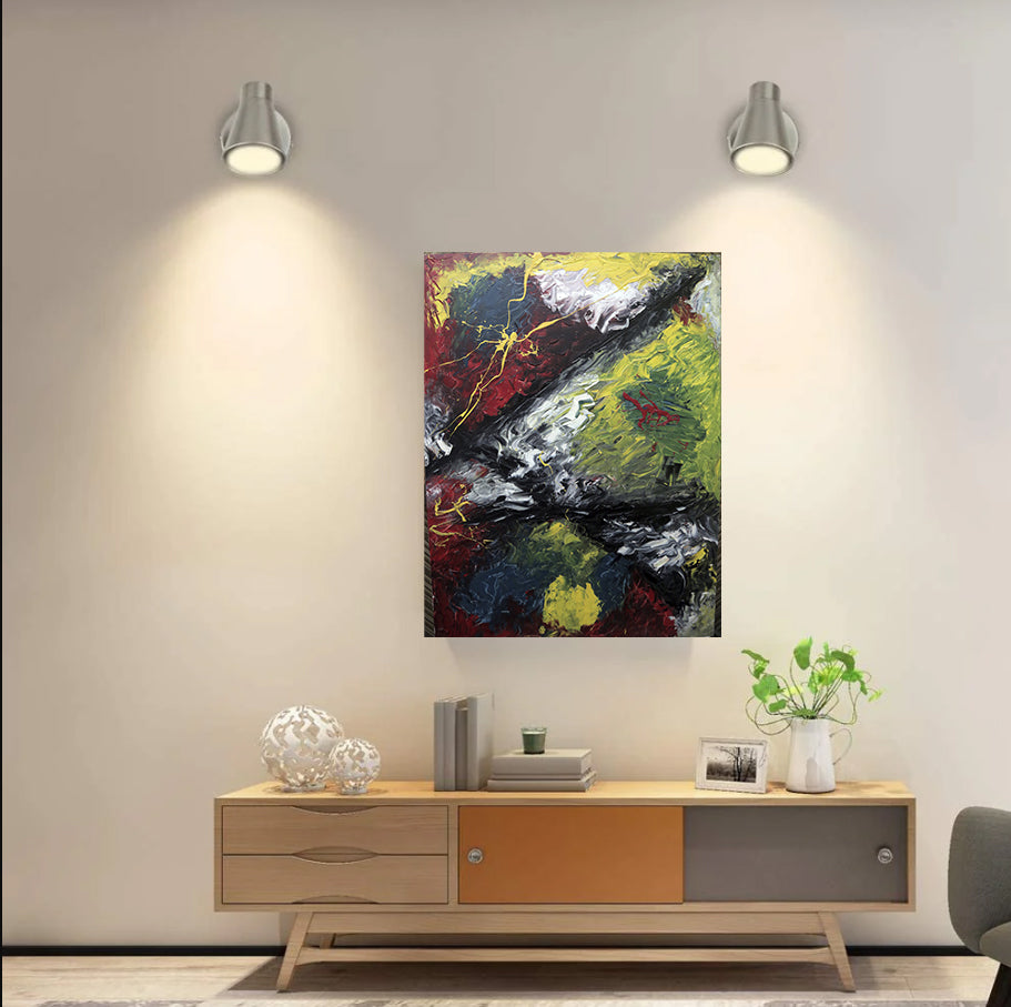 En "Free Jazz", Hernández Soto emplea una paleta de colores contrastantes que se fusionan y se mezclan de manera espontánea para crear una atmósfera vibrante y caótica. Los empastes gruesos y fluidos reflejan la improvisación y las variaciones rítmicas de la melodía que inspira la obra, generando una sensación de movimiento dinámico y sin restricciones. Los trazos ondulantes y las áreas de color difuso evocan la naturaleza libre y fluida de una composición musical de free jazz, creando una experiencia visual inmersiva.