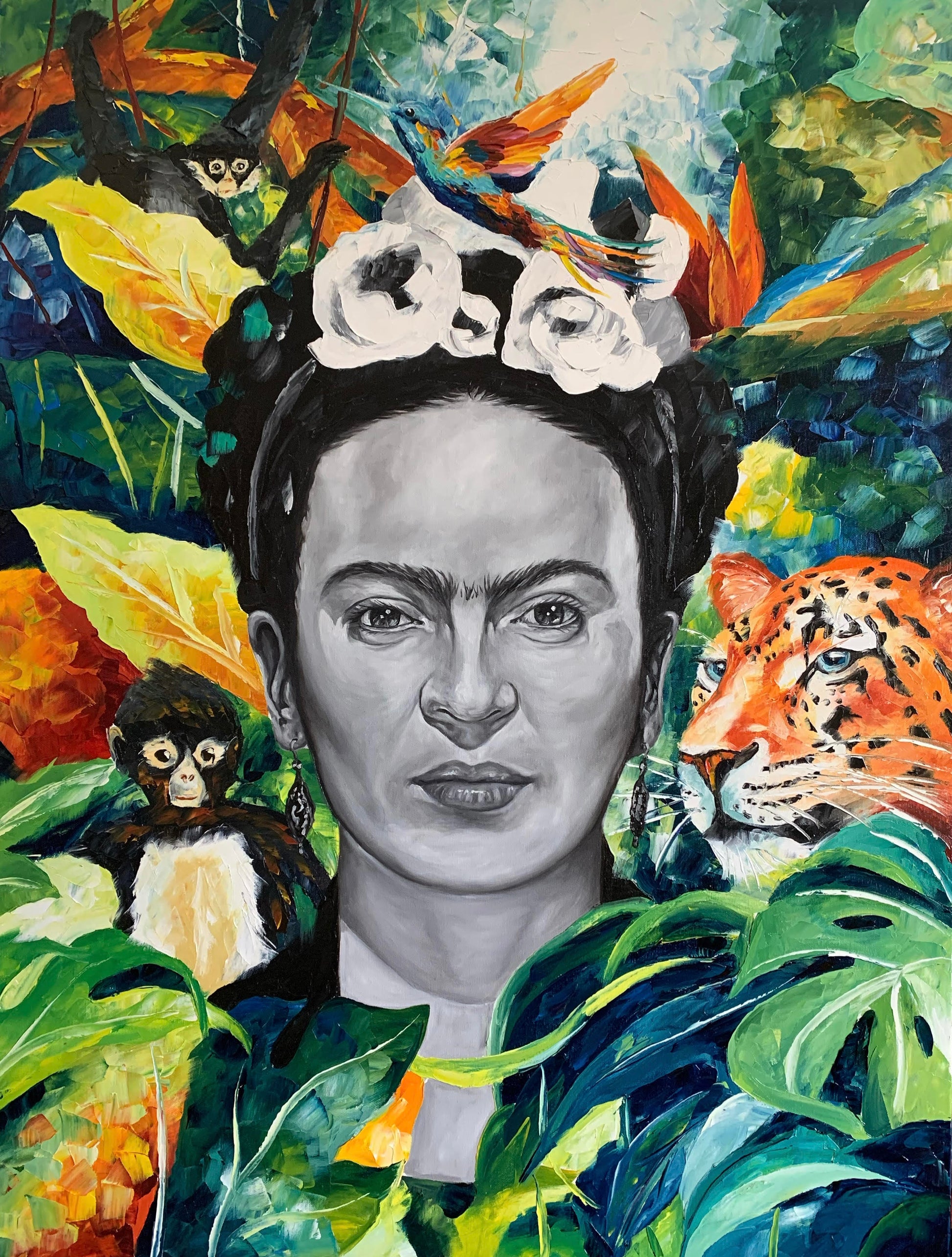 En esta obra representa el amor hacia la naturaleza, su diversidad y raíces mexicanas tomando como eje central a la artista Frida Kahlo