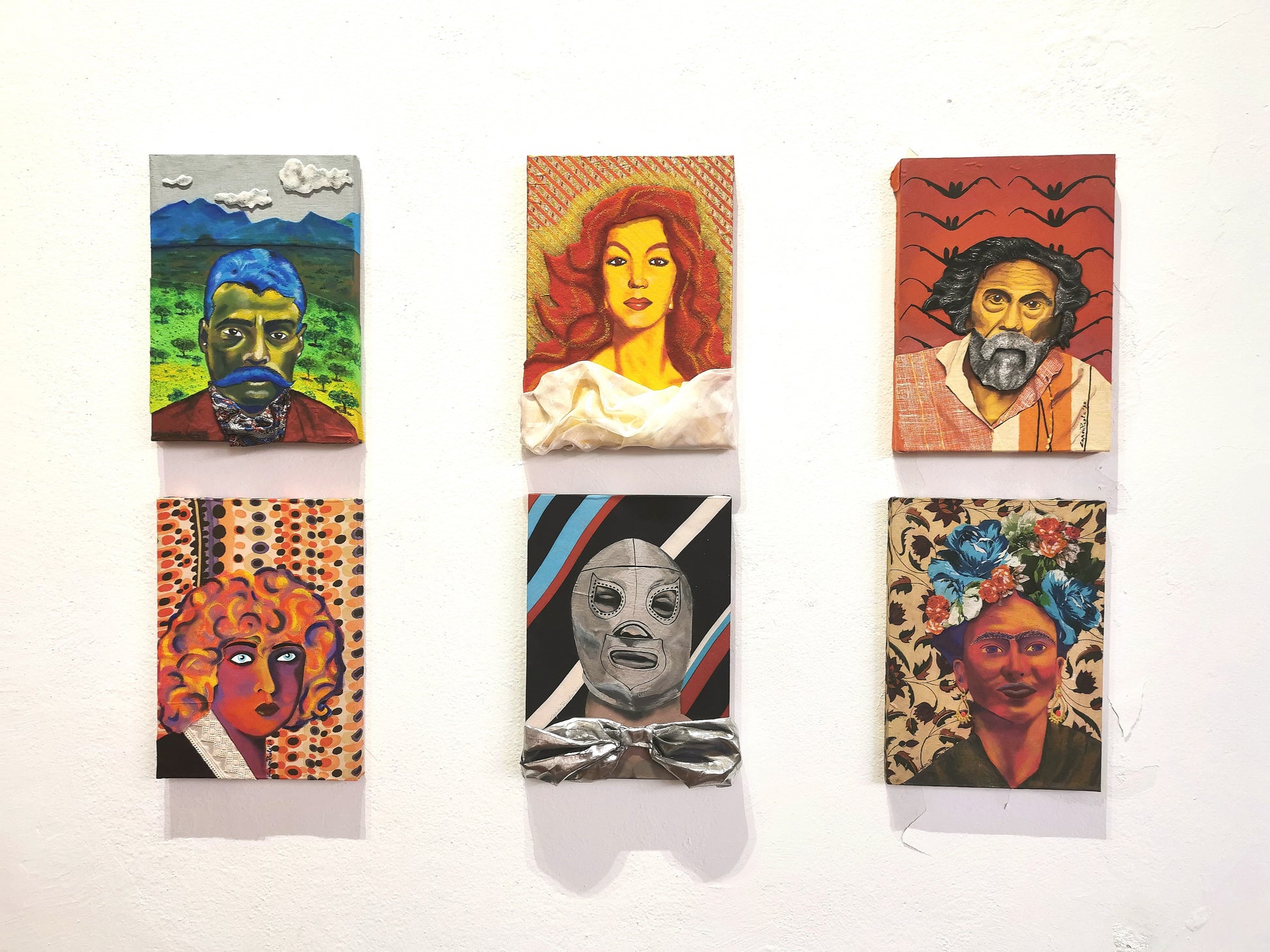 Collage textil y acrilico sobre madera