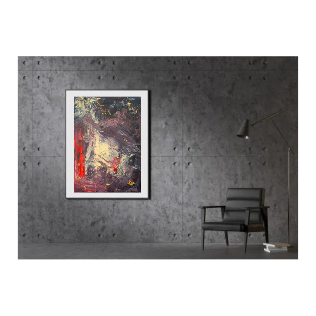 Arte abstracto sobre bastidor de tela de algodón con técnica de vaciado holandés, pinceladas, goteo y raspado.