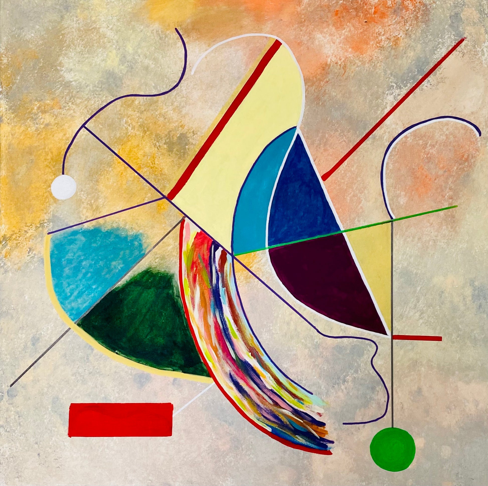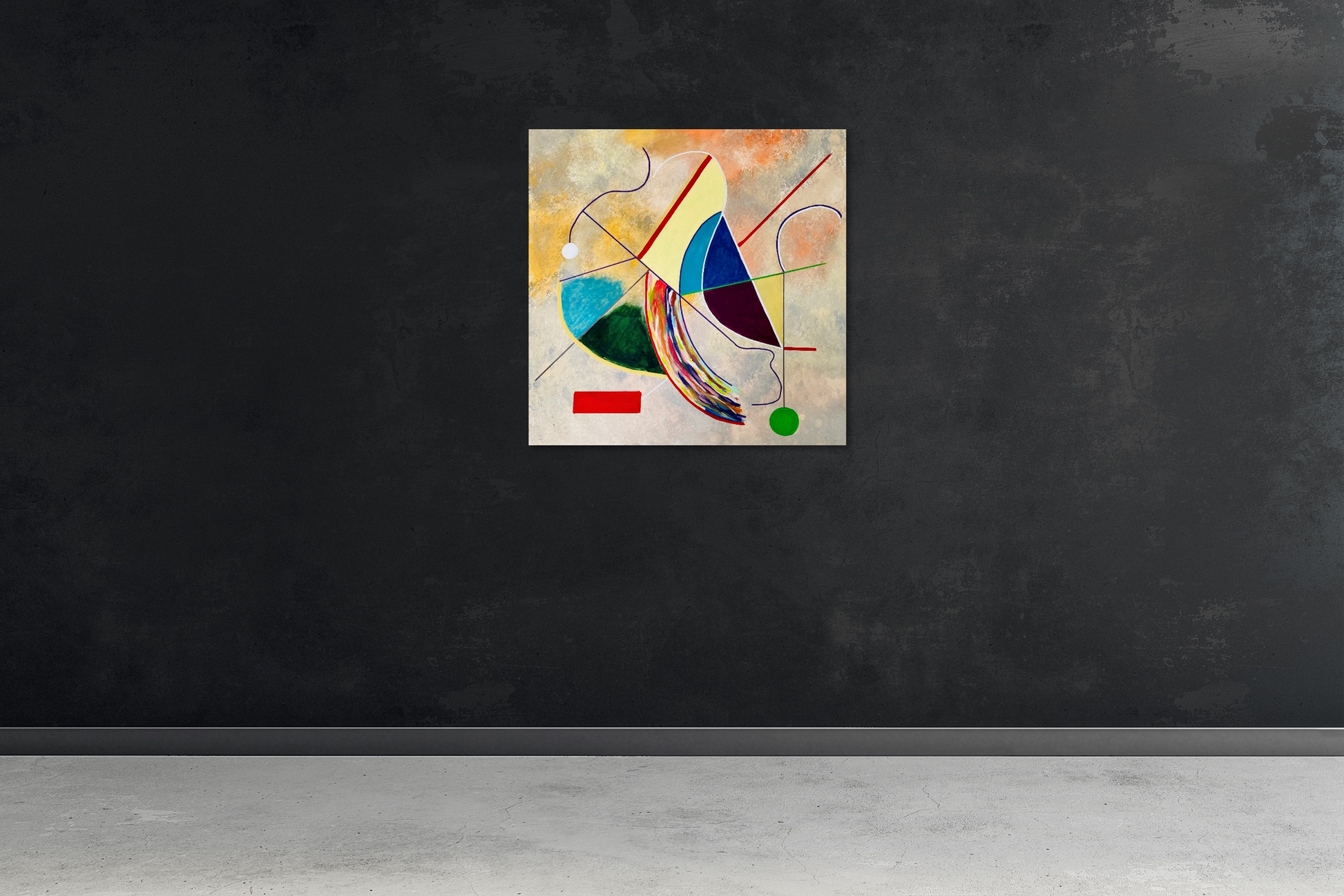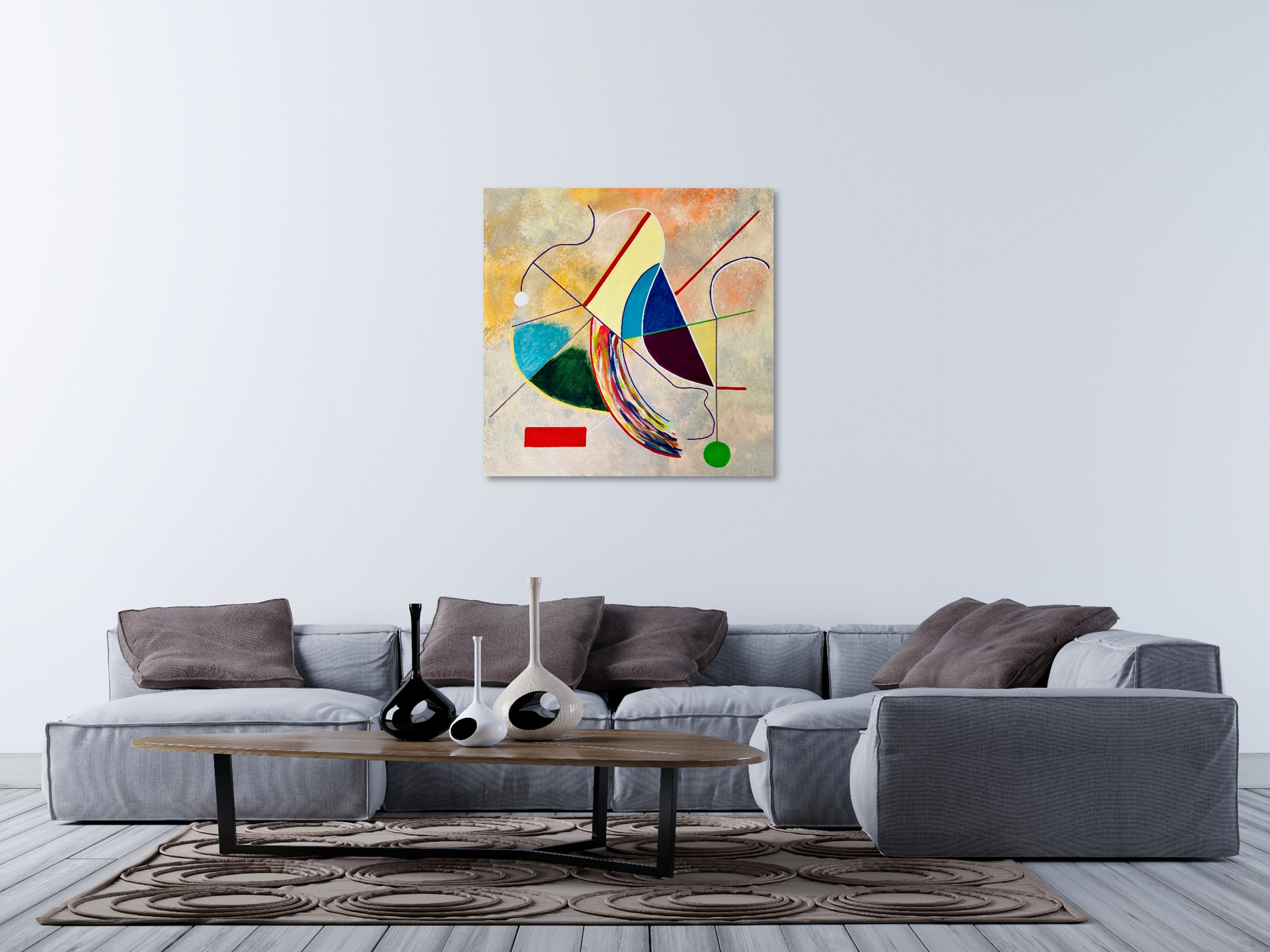 Gallo es una pintura que evoca la fusión entre el arte abstracto y geométrico