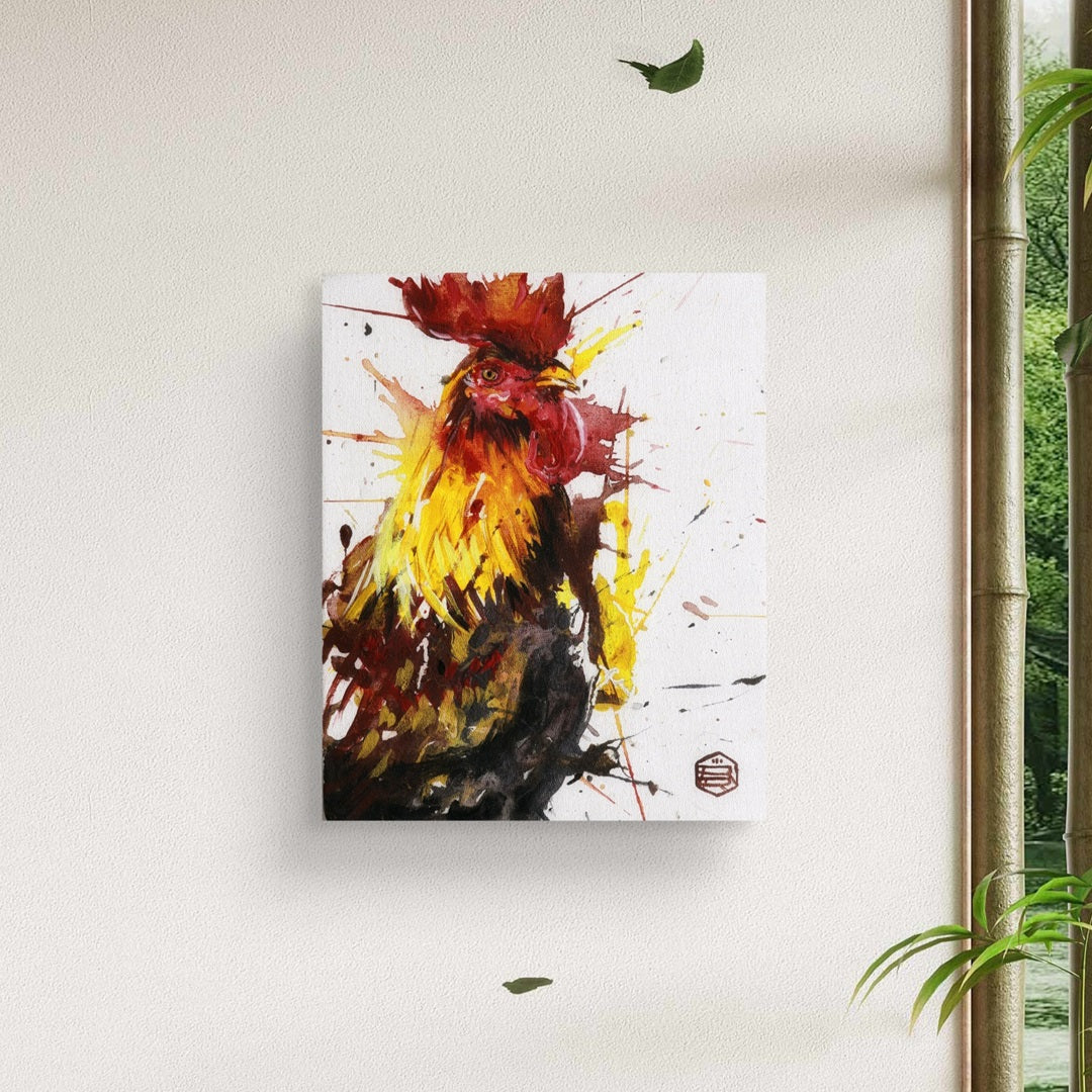 Símbolo de valentía, renacimiento y liderazgo, en un perfil majestuoso. Con su postura orgullosa y su mirada decidida, el gallo representa la protección y el anuncio de nuevos comienzos.