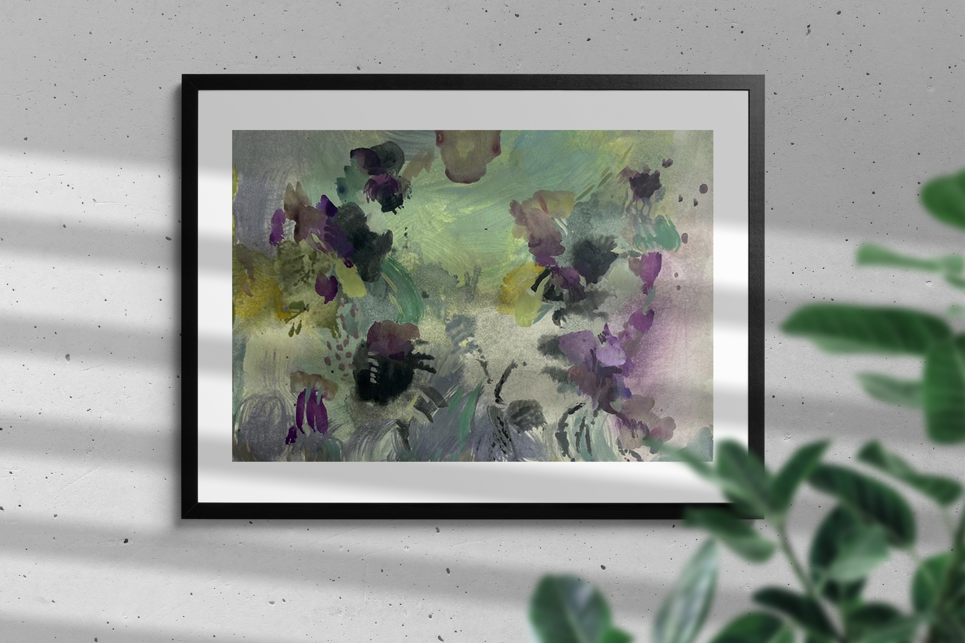 Las formas se expanden y se diluyen como un jardín en transformación. La flor se vuelve recuerdo y atmósfera, una imagen que parece moverse y cambiar cada vez que se mira.
