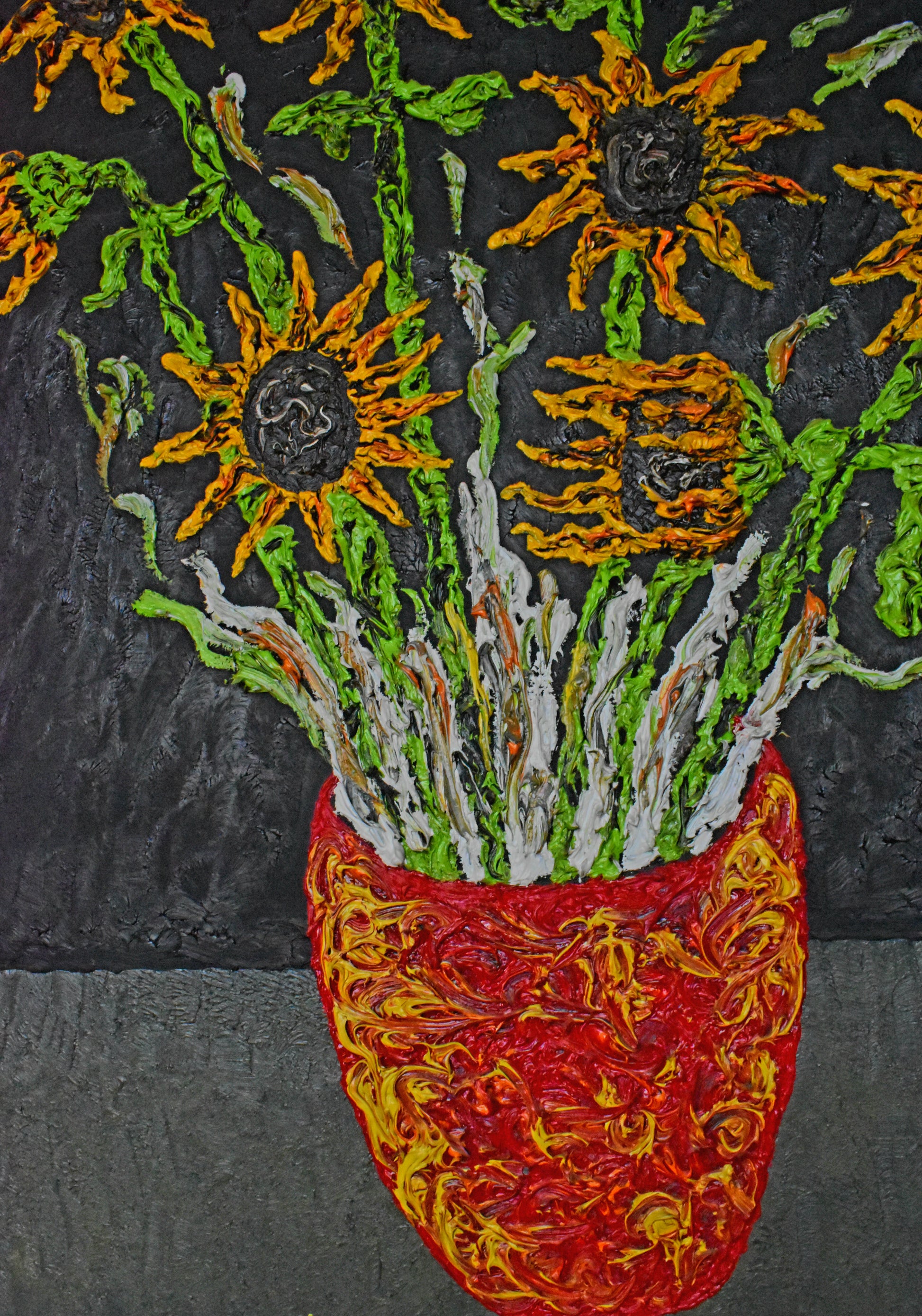 La artista construye un lenguaje visual donde la materia y el color se convierten en herramientas para explorar la memoria, la identidad y la resiliencia. Su obra se mueve entre lo íntimo y lo colectivo, reinterpretando lo cotidiano a través de símbolos que dialogan con la historia, la política y la espiritualidad. Con una pincelada expresiva y una profunda carga conceptual, su obra no solo representa, sino que también desafía, invitando a la reflexión sobre la permanencia y la transformación.