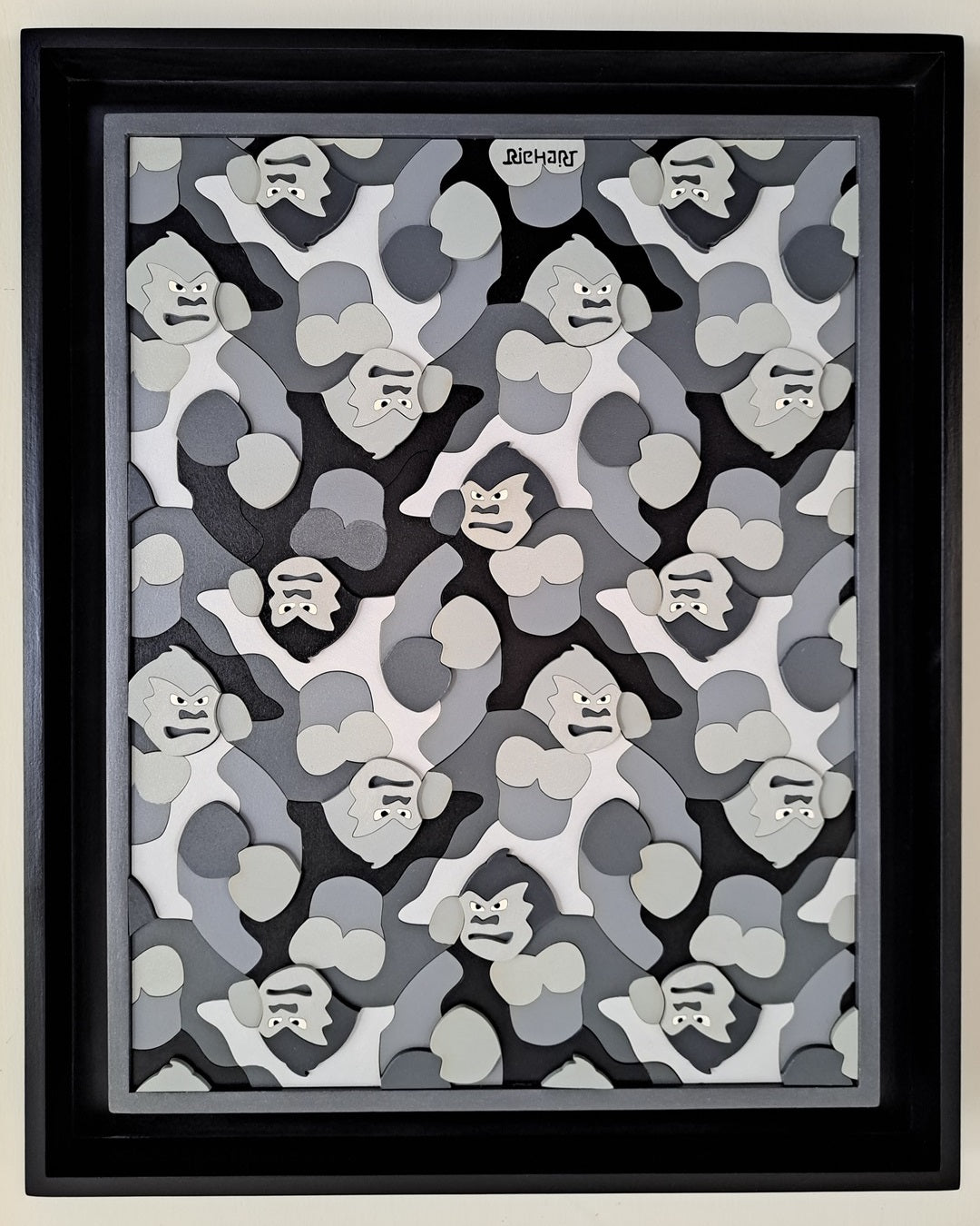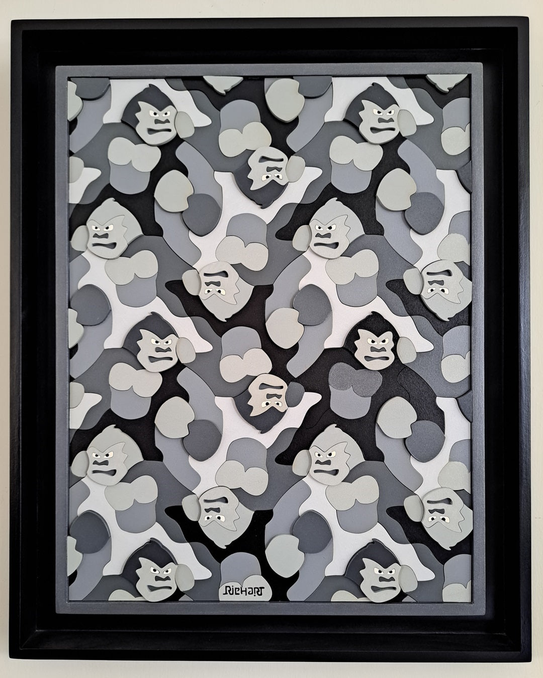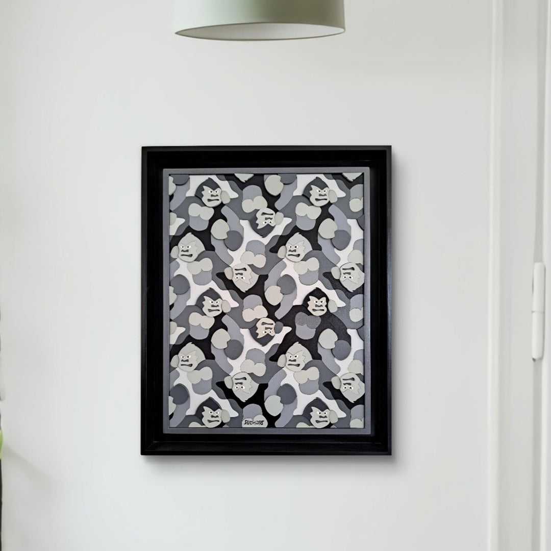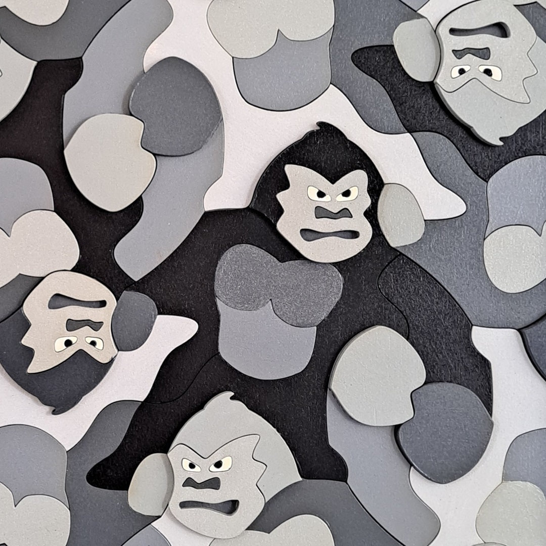 Gorilas que se repiten, se deslizan y rotan en tonos monocromáticos.