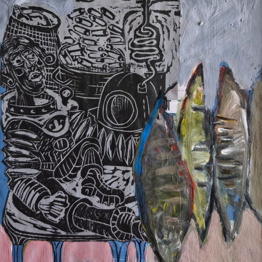 Esta serie de grabados y técnicas mixtas se centra en temas de conflicto y crisis, reflejando tanto las tensiones de guerra como las dificultades cotidianas como la escasez de alimentos, en el contexto de la inseguridad en las calles.