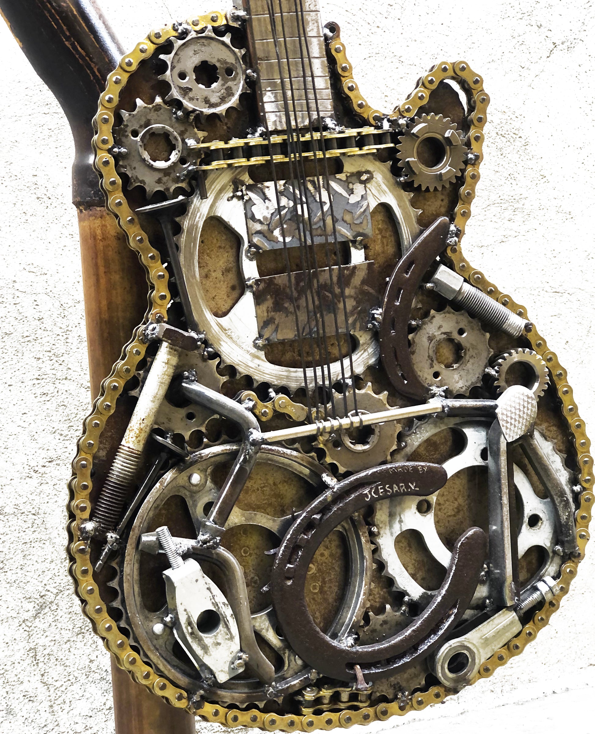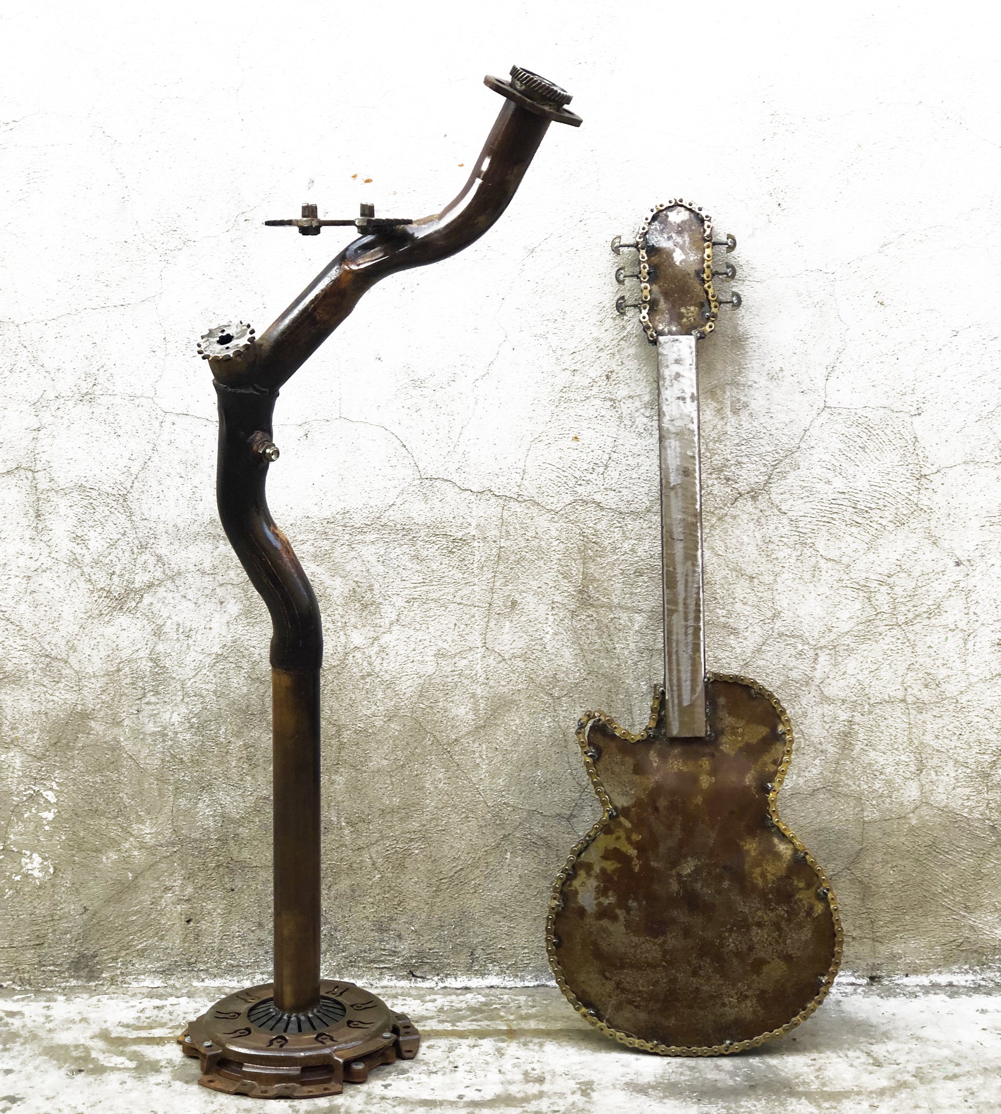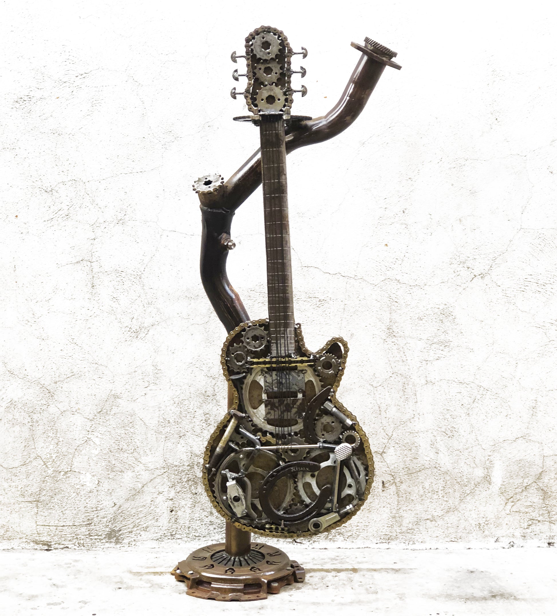 Escultura tamaño real de Guitarra Eléctrica con la figura icónica del Hard Rock.