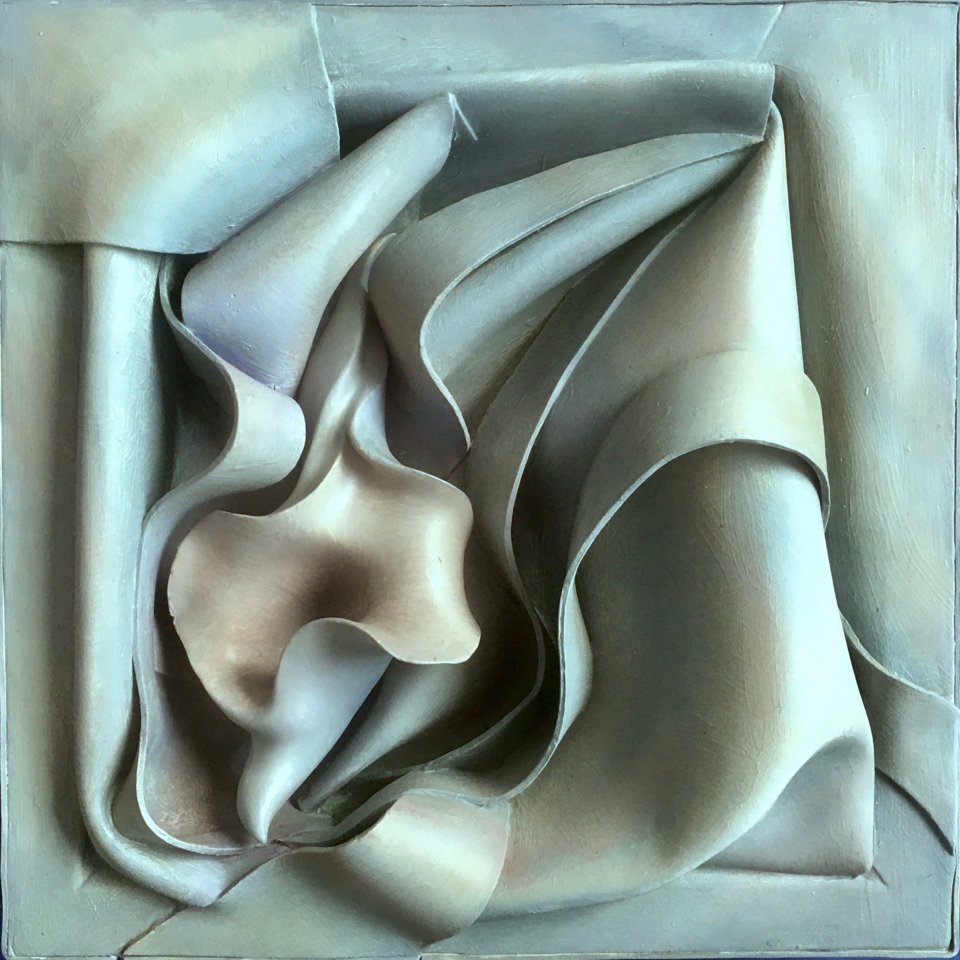 This is undulating material in a box with a ceramic 'Mutant" that shares and blends into the environment.