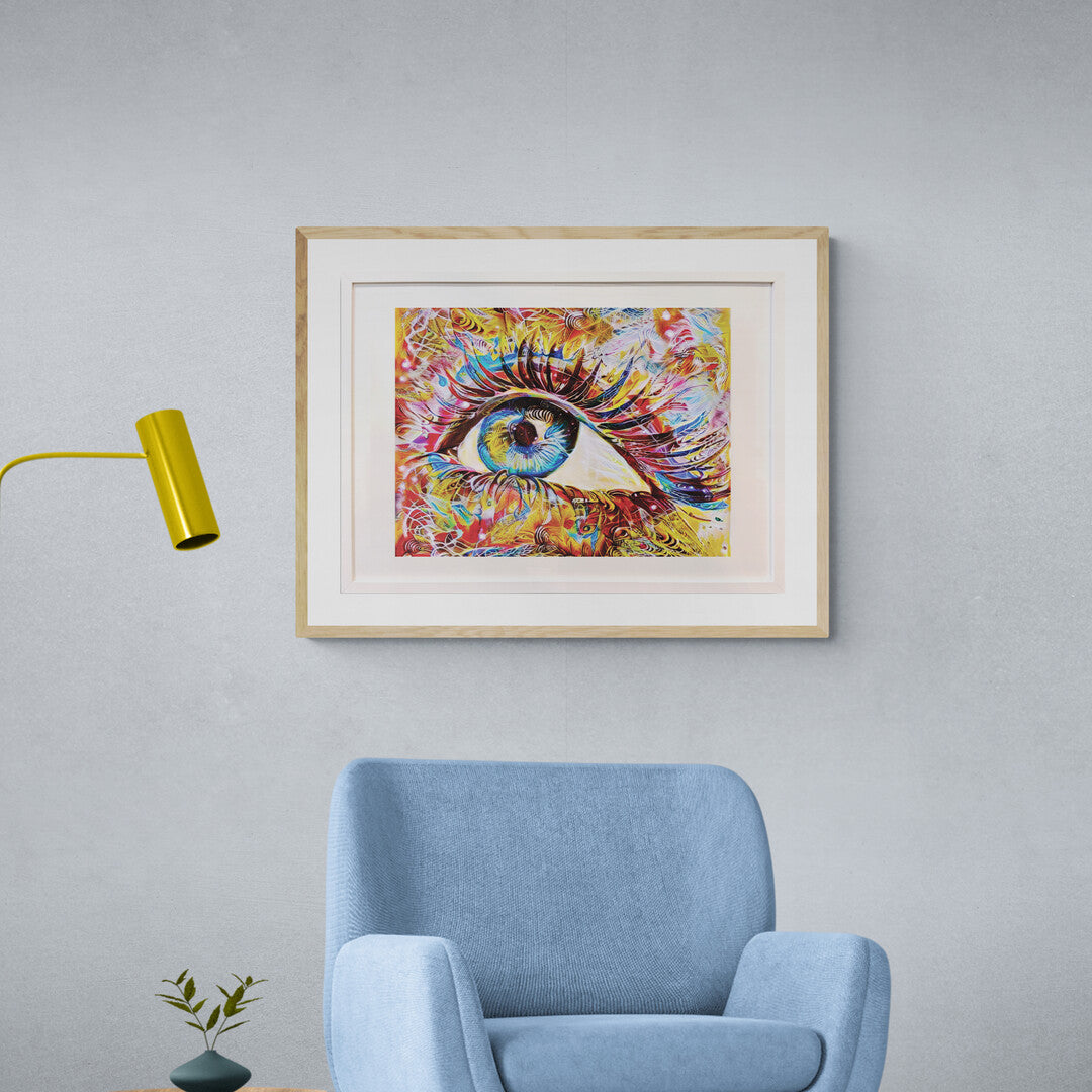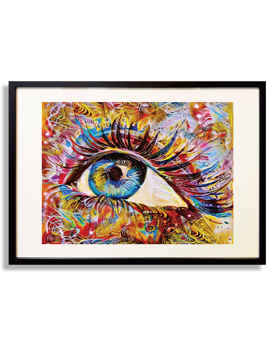 Desde niño me ha gustado dibujar y pintar ojos, esta es mi mas reciente obra con este tema. Esta reproducción de mi obra original que ya no está disponible, es una edición limitada a 20 copias, vienen firmadas, numeradas y con certificado de autenticidad. También está enmarcada y llega a tu domicilio lista para colgarse. La realidad aumentada la podrás ver a través de tu celular o tablet las veces que lo desees.