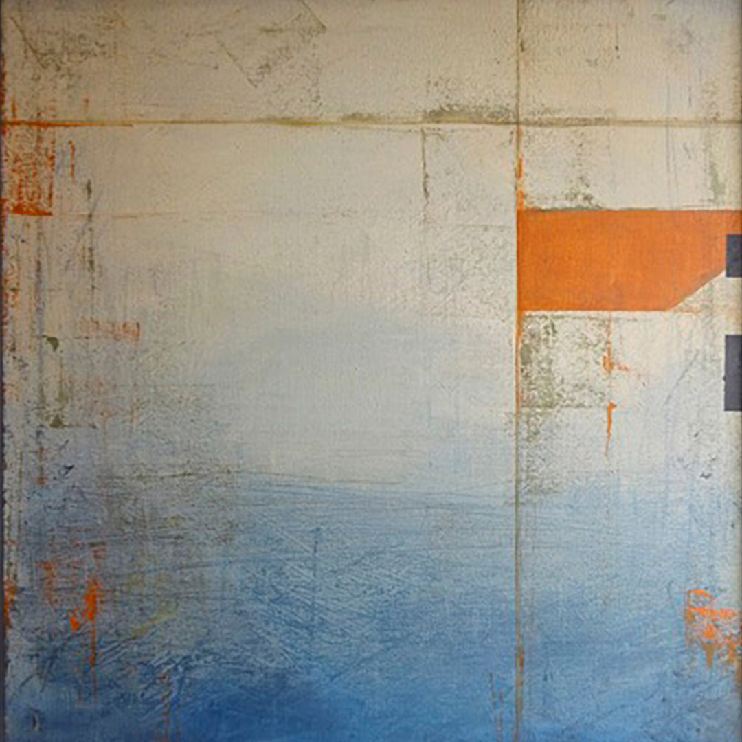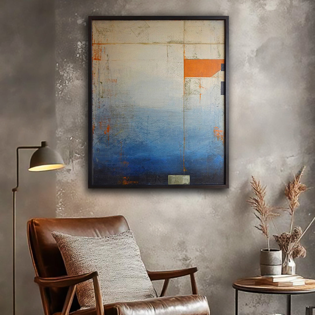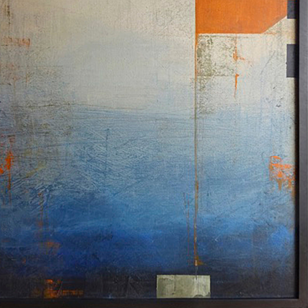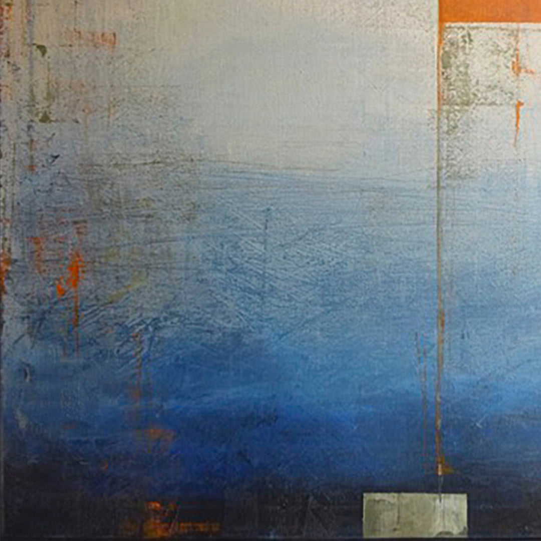 Obra abstracta de la serie “HORIZONTES”, evoca sentimientos a través de un tono azul marino, a una claridad neutra. (2023)