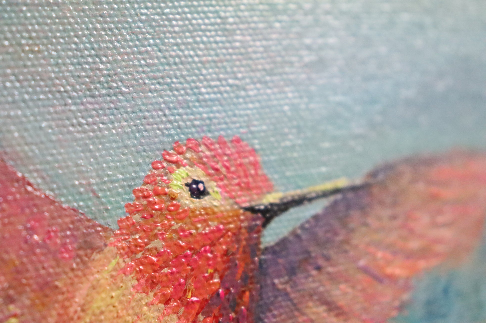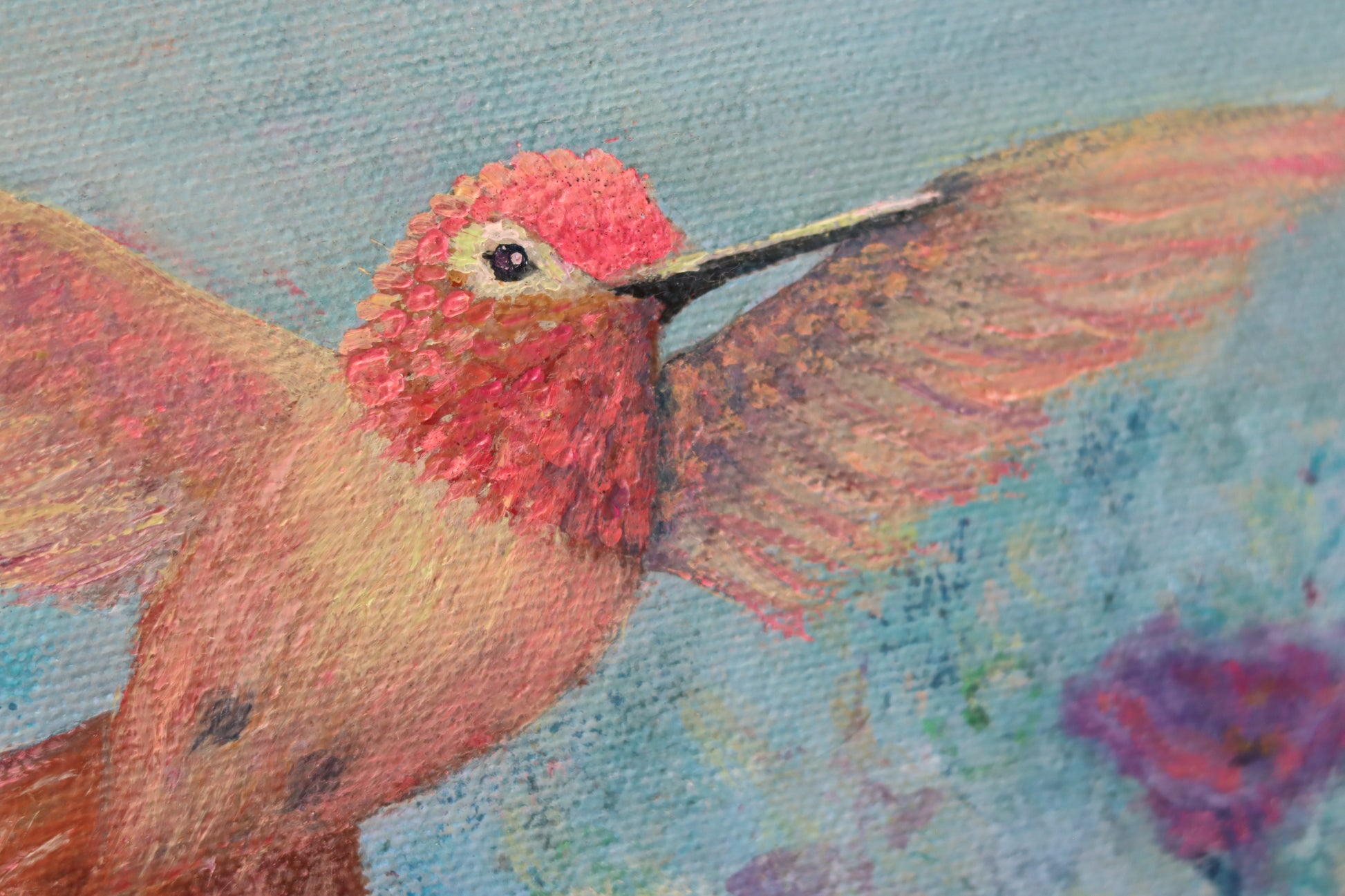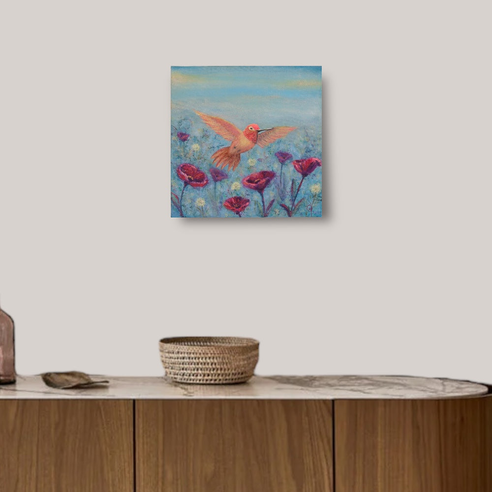 Huitzilin, como le llaman al colibrí, tiene dos significados en Nahuatl, “espina preciosa” y “siempre en movimiento”. El colibrí en esta pieza representa nuestro corazón, ese motor incansable que nos impulsa a avanzar a pesar de los desafíos.