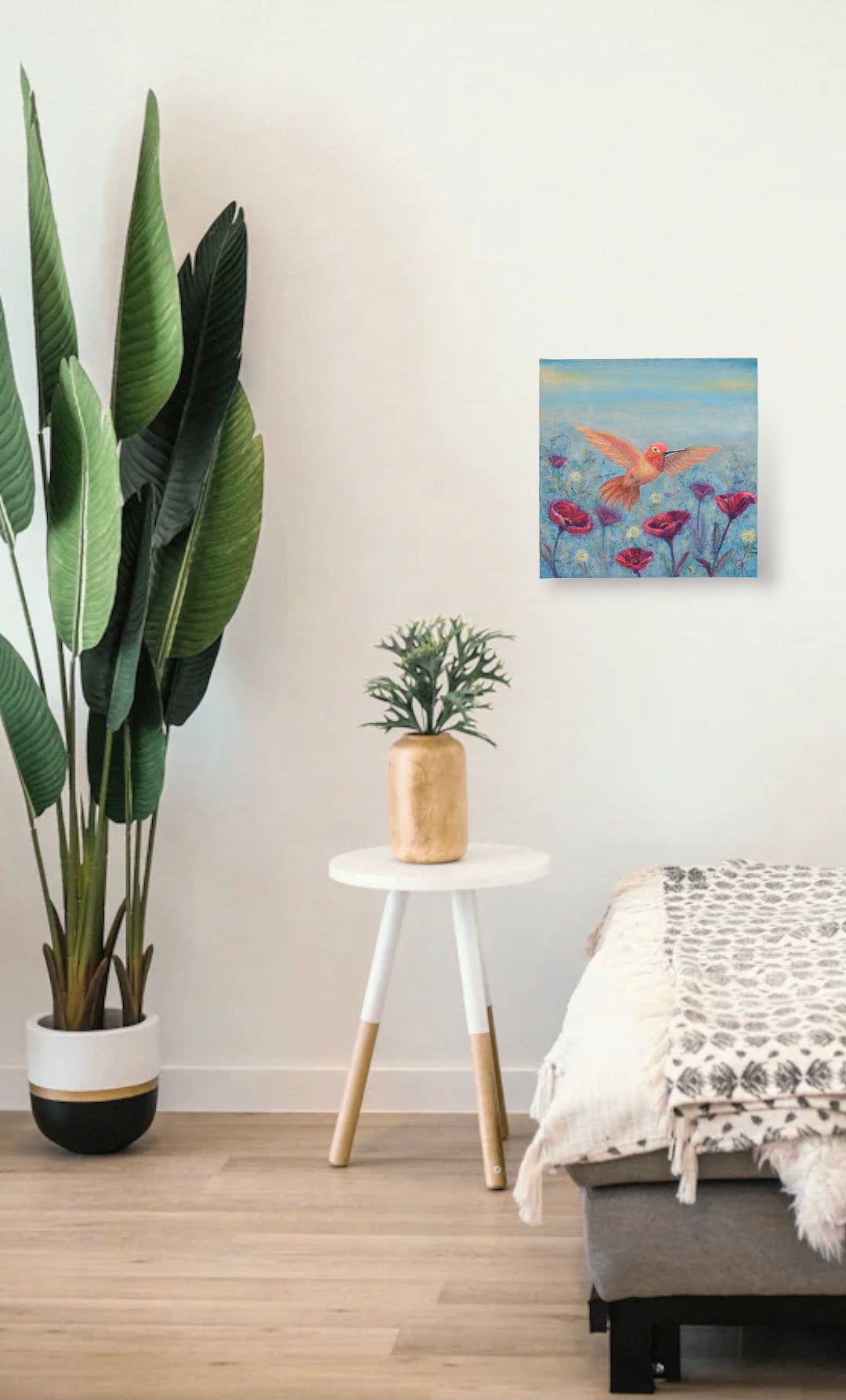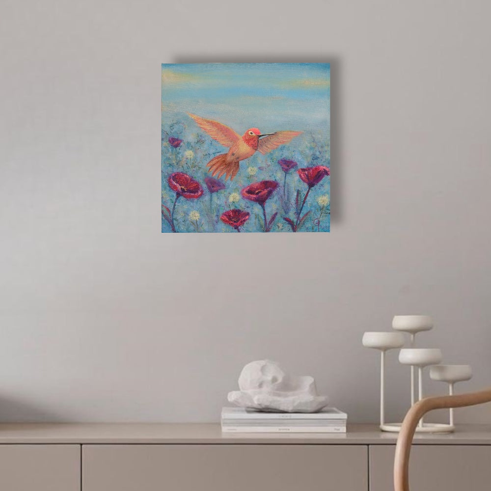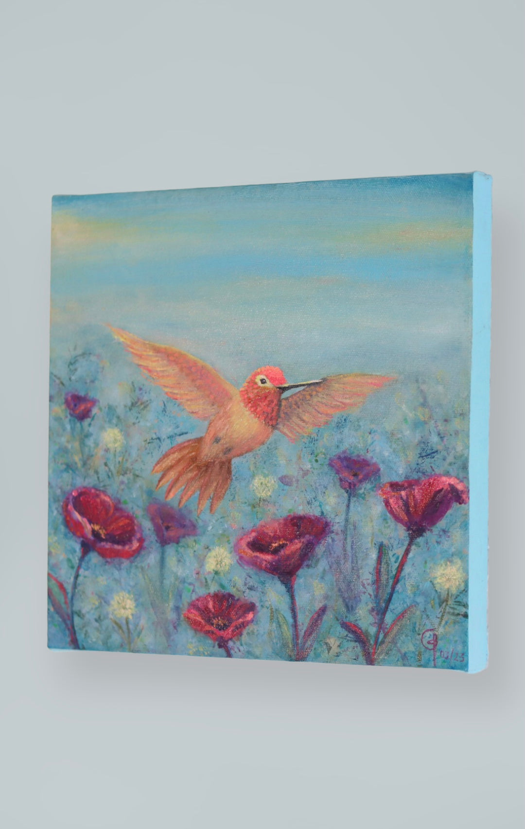 Huitzilin, como le llaman al colibrí, tiene dos significados en Nahuatl, “espina preciosa” y “siempre en movimiento”. El colibrí en esta pieza representa nuestro corazón, ese motor incansable que nos impulsa a avanzar a pesar de los desafíos.