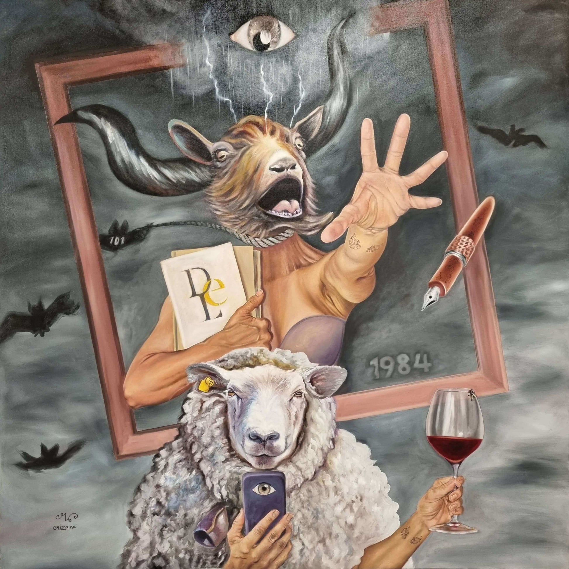 La obra captura la transformación de un personaje que, en su búsqueda de libertad, enfrenta una presión asfixiante. Representada inicialmente como una cabra, símbolo de valentía y rebeldía, la figura es sometida a una tortura incesante hasta que, finalmente, renuncia a su identidad. En su "conversión," se transforma en una oveja, una alegoría de conformismo y docilidad, que encuentra comodidad en la ignorancia y se somete a Big Brother, convencida de que "la libertad es esclavitud."