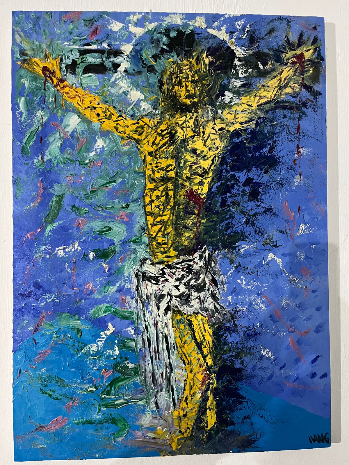 "Iluminado" es parte de mi colección Bíblicos y Dioses, como parte de la idea central del proyecto, pinté a la figura más representativa de la historia de la humanidad en una de las escenas más conocidas.