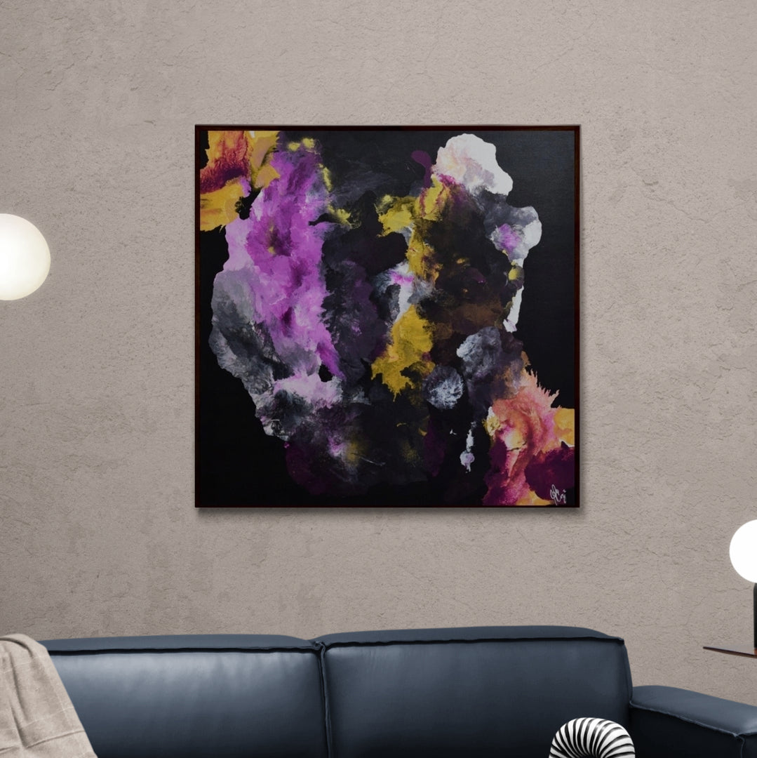 La inspiración de esta obra está basada en el concepto de la palabra pensamiento, que significa tener un pensamiento, en su infinito y en como estos nos hacen sentir, como pueden afectar de manera positiva o negativa a una persona. Con los colores y la técnica quiero transmitir esa sensación de infinidad y fluidez con la que vienen; y van a nuestra mente.