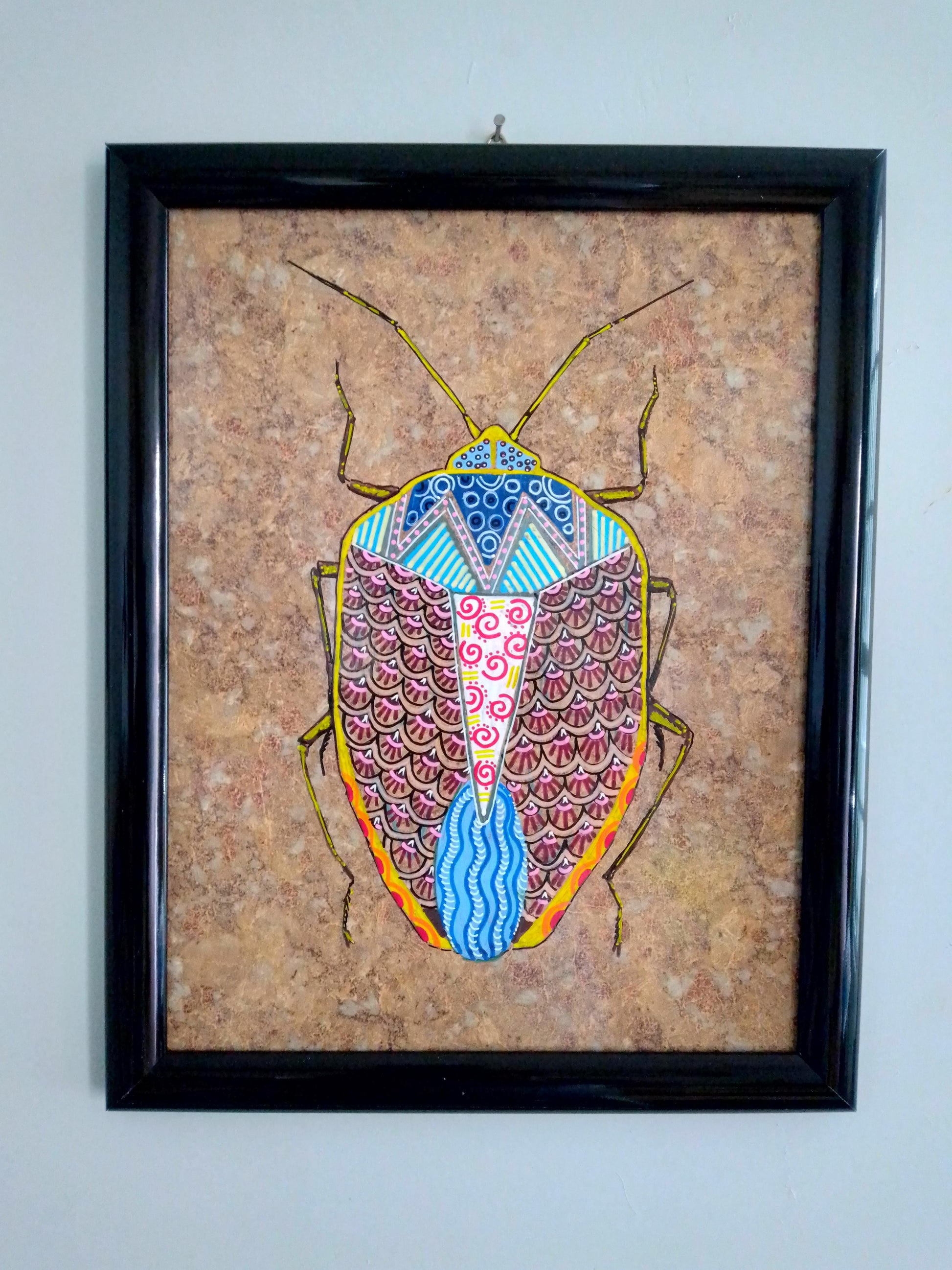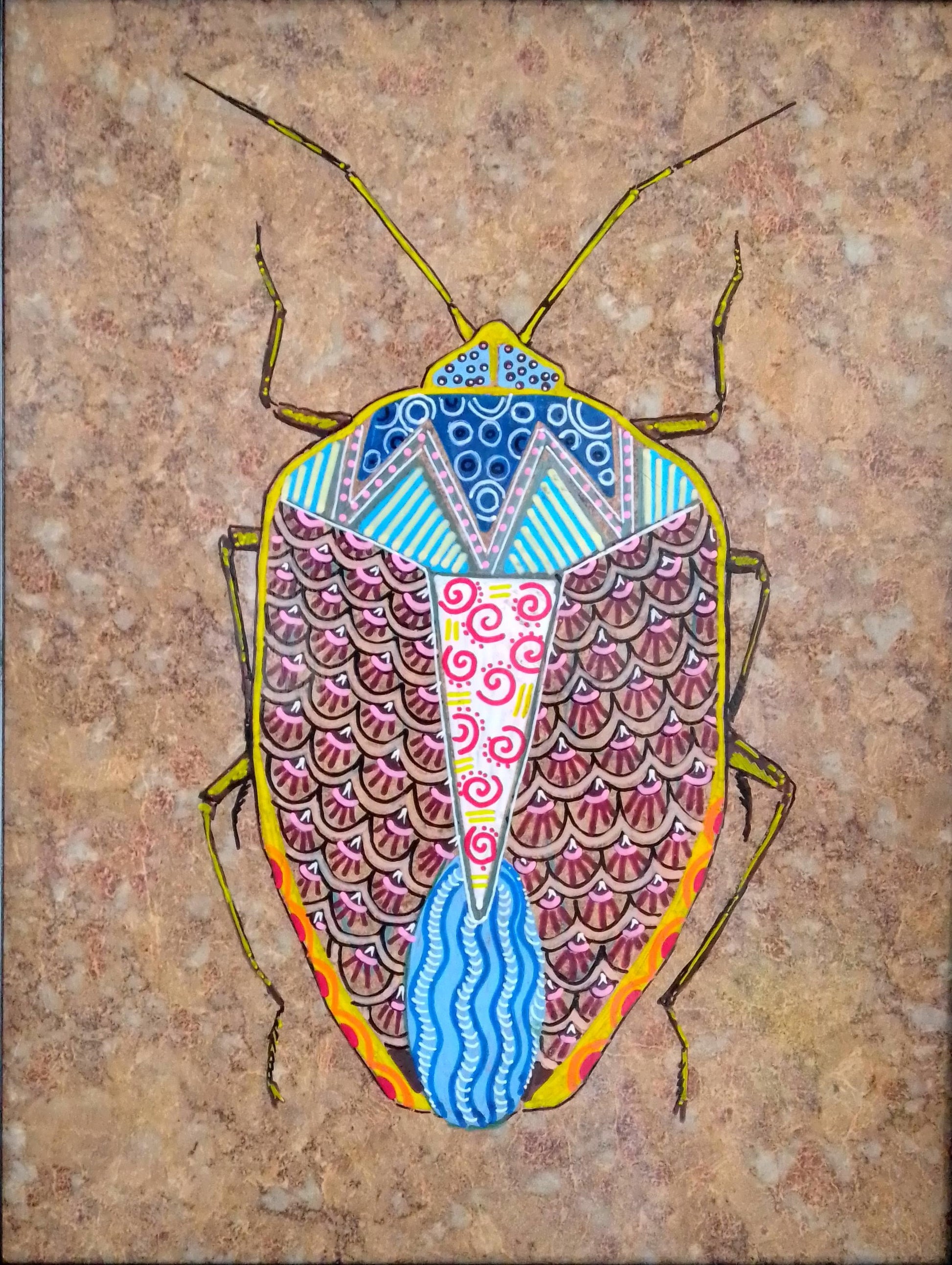 Esta obra, realizada con marcadores acrílicos nos transporta a un universo colorido y lleno de vida, donde la representación de un insecto, trabajado con el Método Mexicano del Dibujo, revela la belleza oculta en el mundo de los insectos.