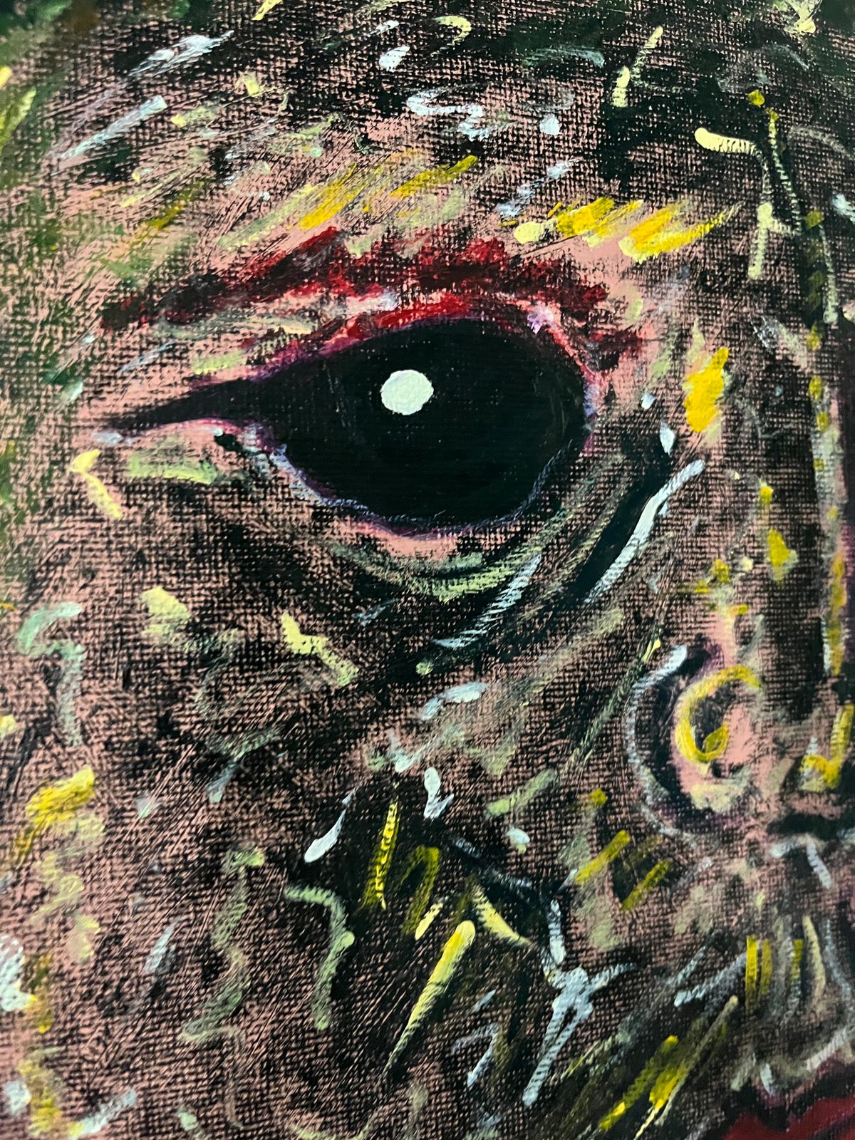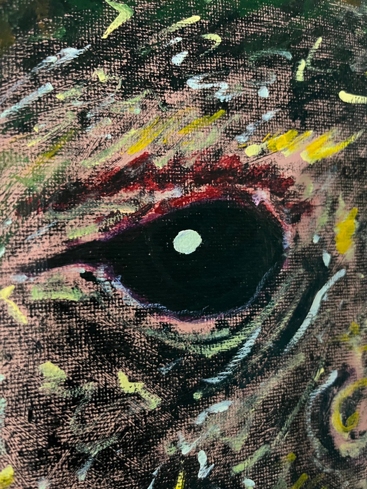 Cuando miré la imagen me dediqué a buscarlo en mis sueños, con ayuda de la meditación budista pude tener un entrenamiento en sueños para poder viajar a través de ellos. Durante una noche de insomnio, dentro de un microsueño lo encontré y lo pinté.