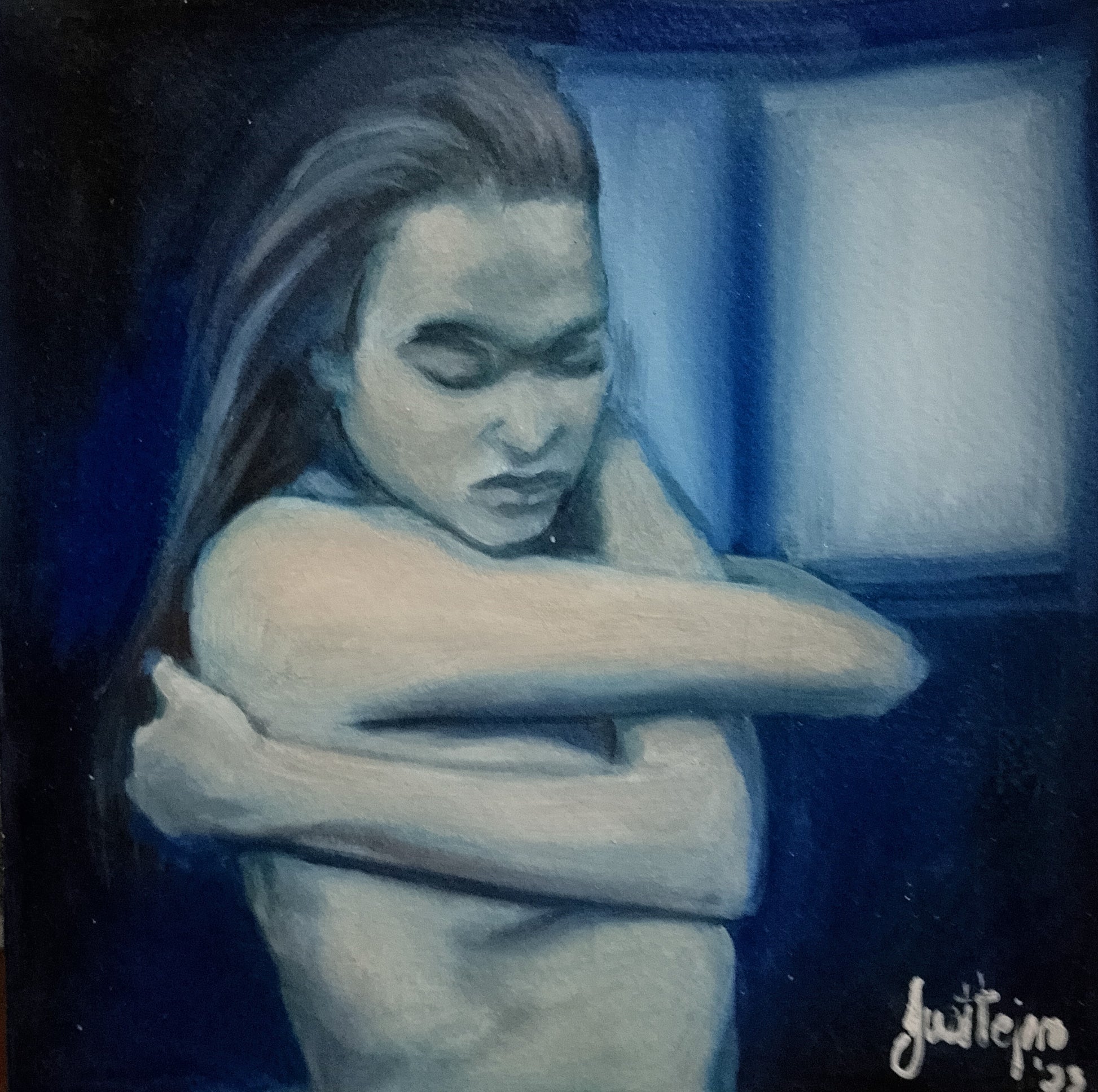 La obra retrata a una mujer dentro de su cuarto expresando de manera íntima sus emociones, la obra fue realizada influenciada en la época azul de Picasso. En esta época Picasso retrata la soledad y pobreza de París.