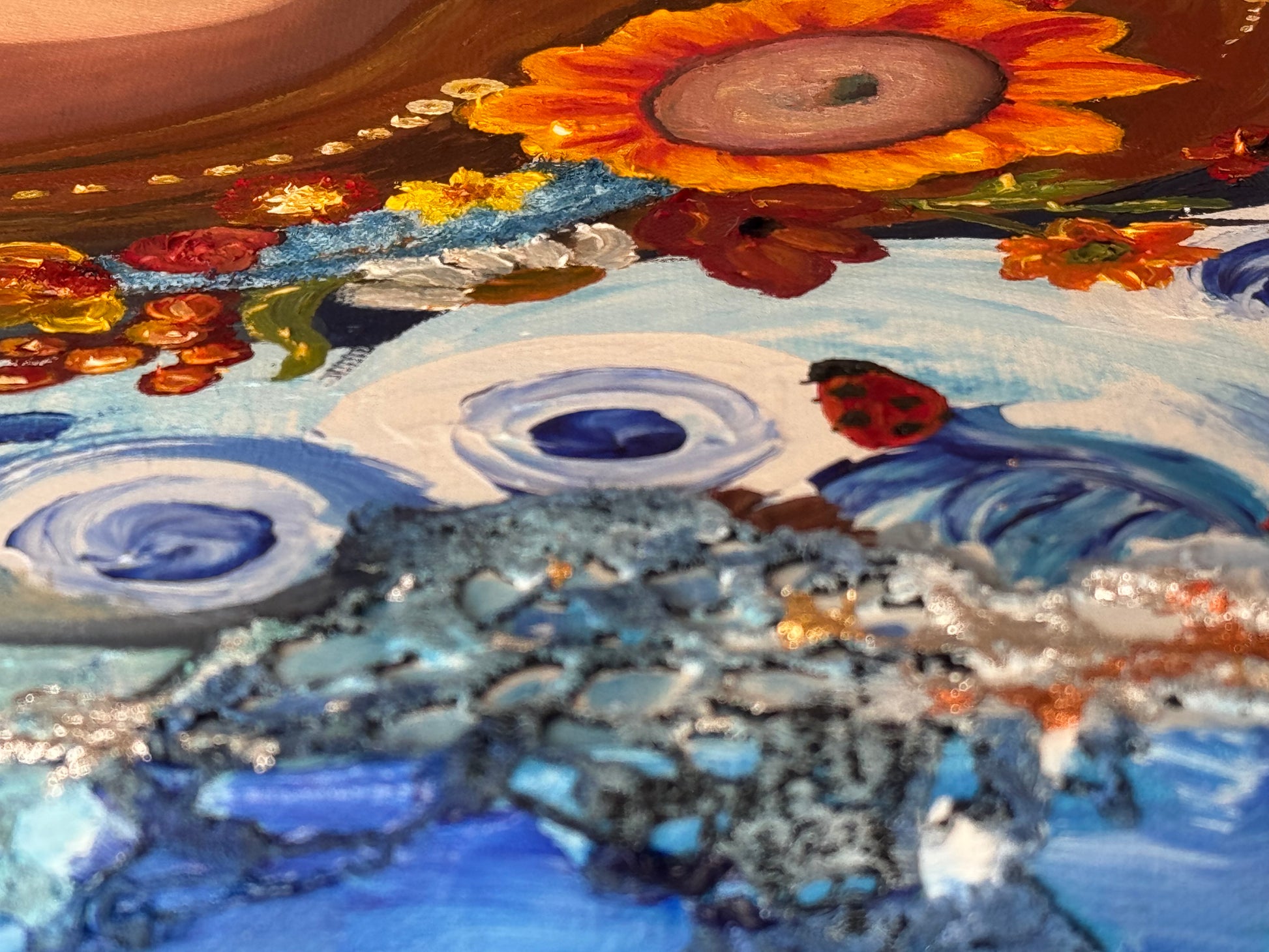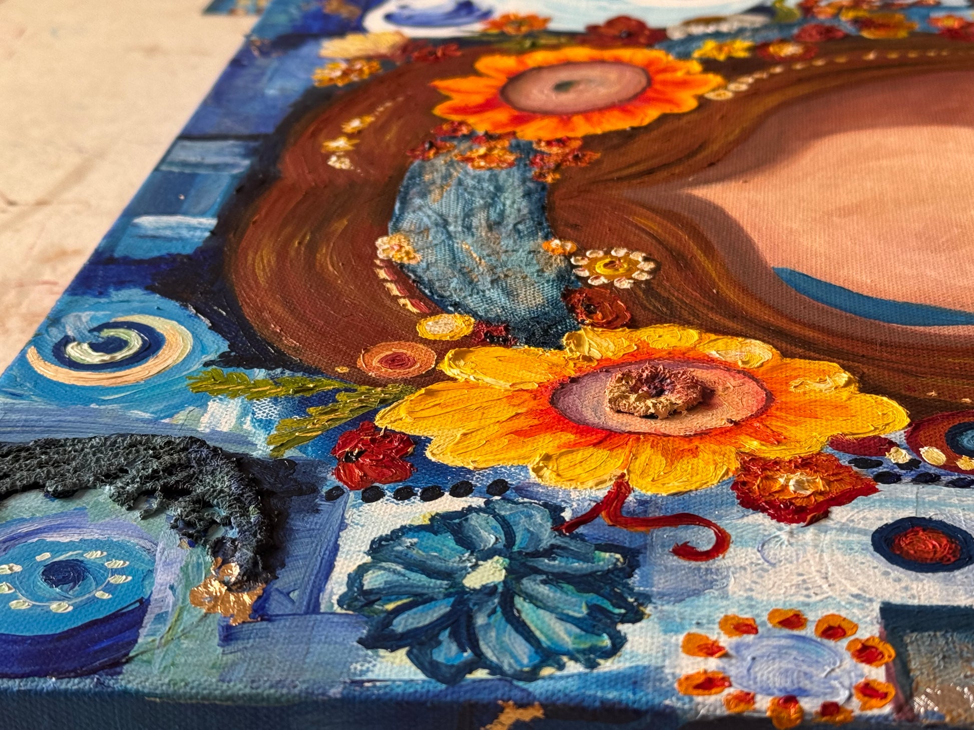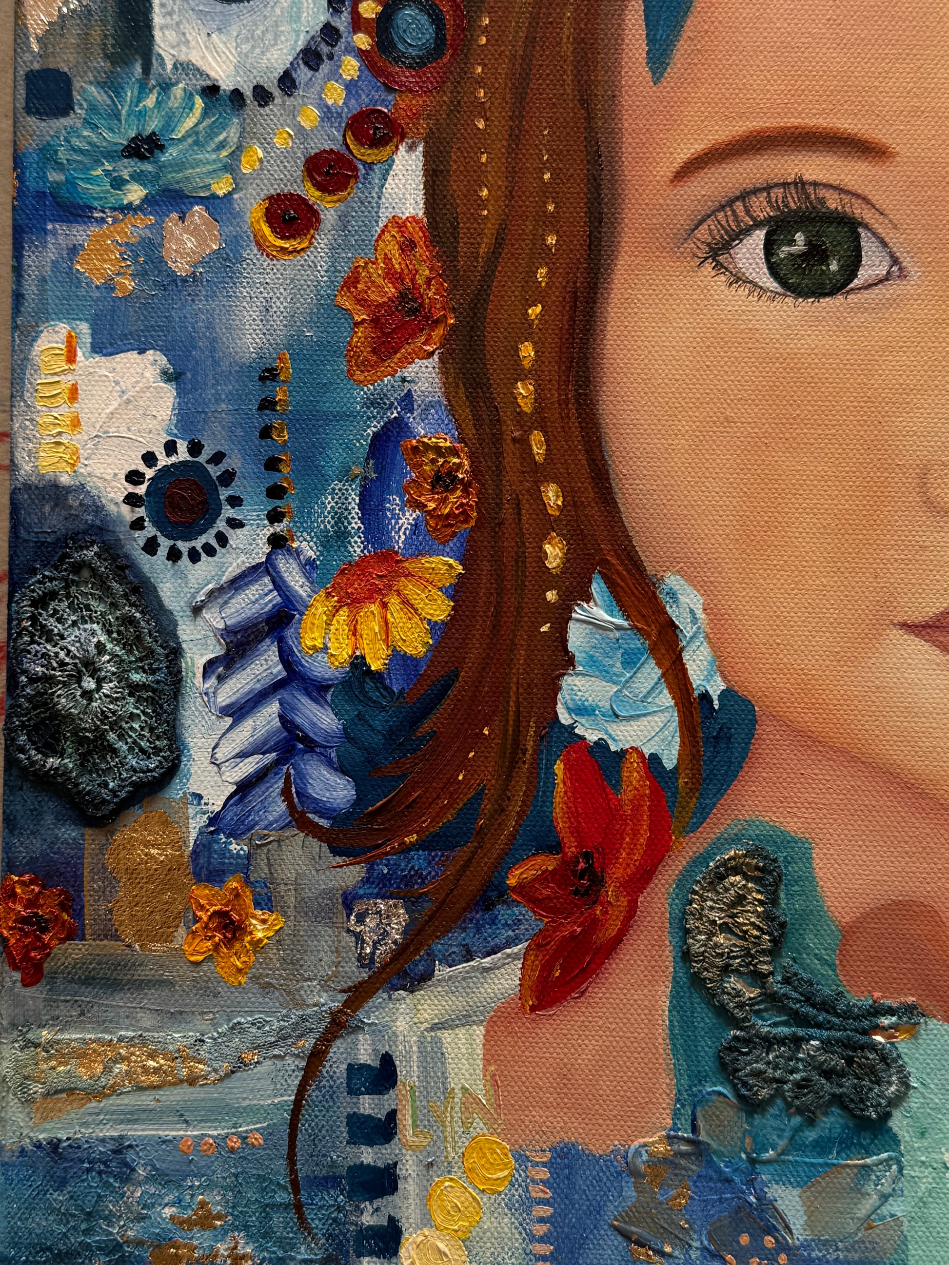 Como en otras de mis obras, algunas miradas tienen el poder de despertar preguntas en mi que no tienen respuesta. Esta es la cuarta de 4 hermanas gemelas que me inspiraron a crear … sumergiéndome en un mar de reflexiones. Sin buscar respuestas, quise capturar la esencia del momento, y esperando que la incertidumbre se convirtiera en arte.